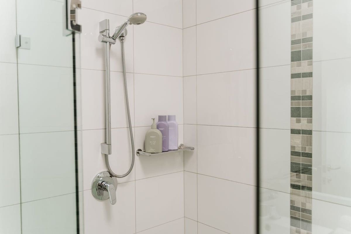 Bedroom 1: King bed, TV, ensuite with a shower.