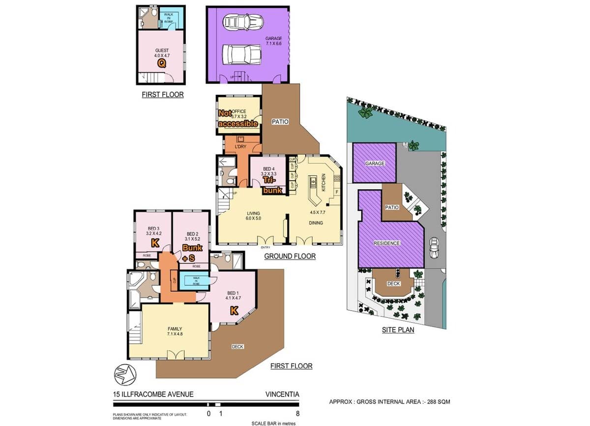- Layout: Two levels, Spacious, Multiple living areas inside, Three separate deck areas, Separate studio with ensuite