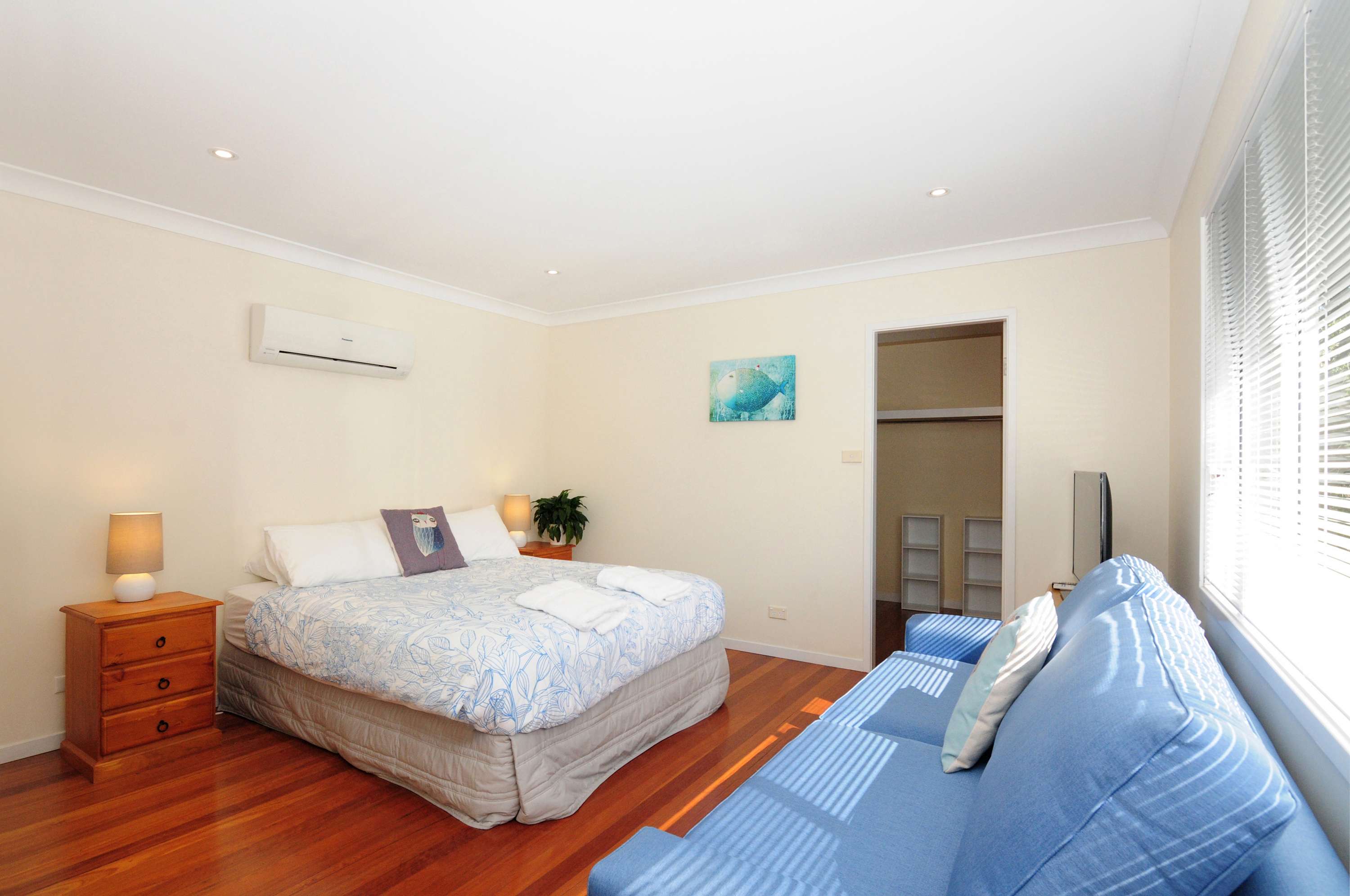 - Bedroom 3 (Upstairs) : King bed, Walk-in robe, ducted A/C