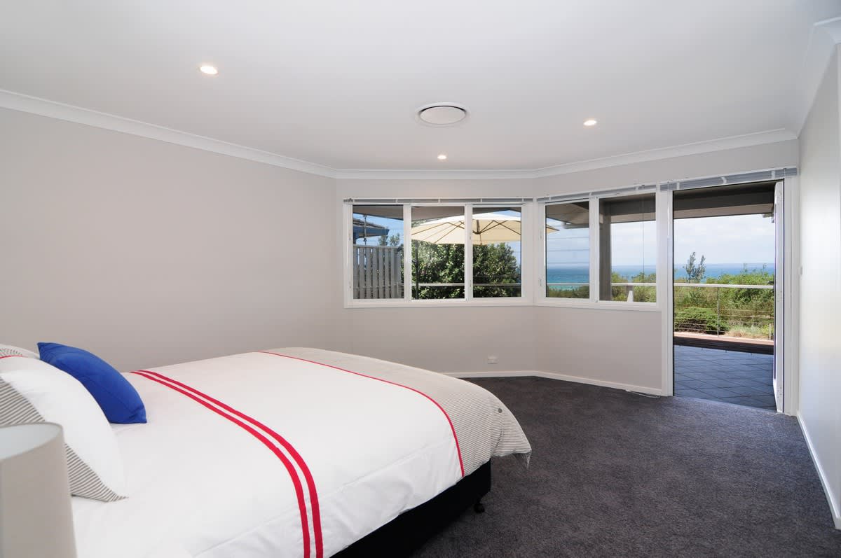 - Bedroom 1 (Upstairs) : Master with King bed, Water views, Deck access, Ensuite, Walk-in robe, ducted A/C