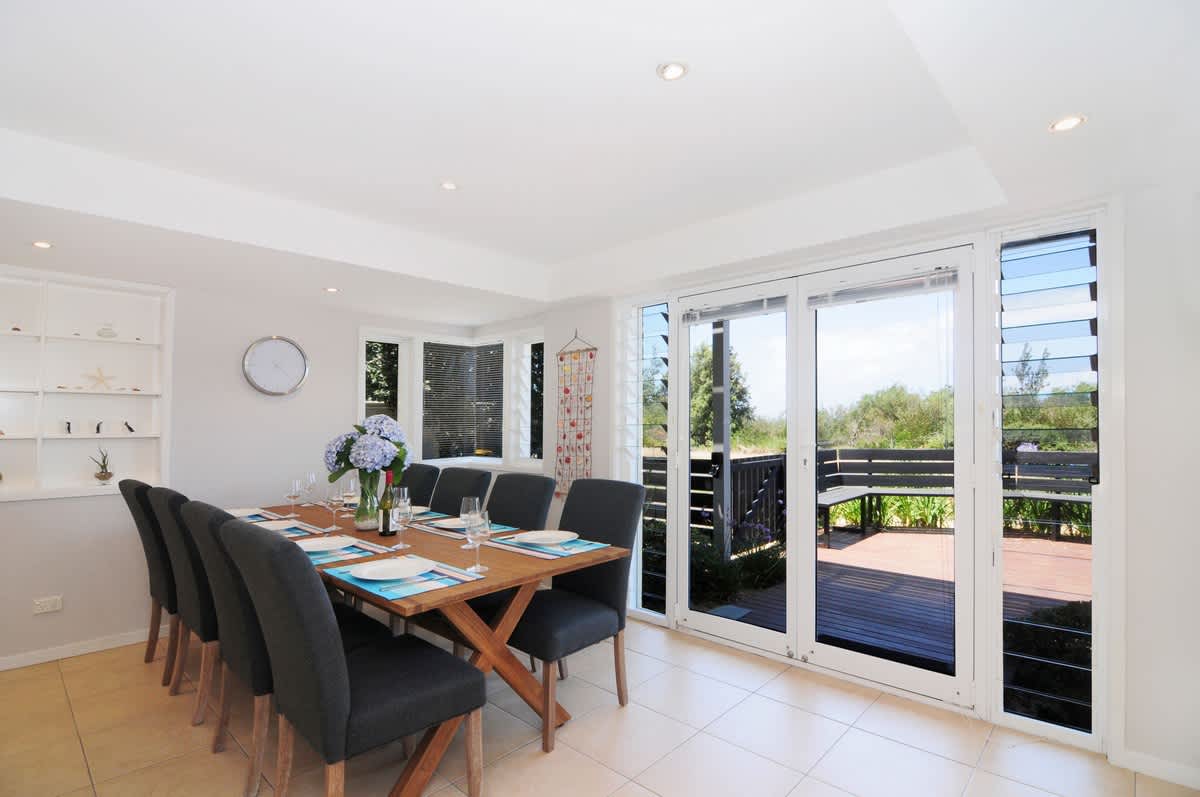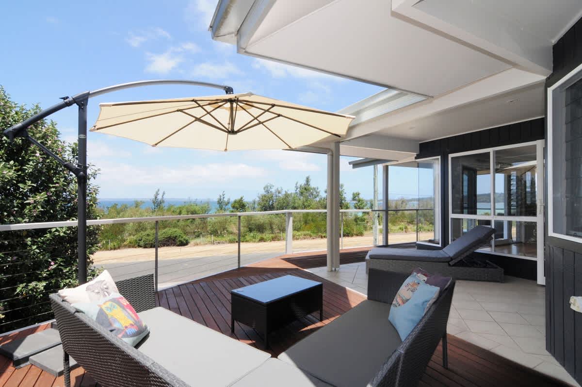 Arcadia is a gorgeous property overlooking Jervis Bay. Its location on Illfracombe Avenue makes it one of only a few houses adjacent to Collingwood Beach that isn't on the busier road that connects Huskisson and Vincentia. Furthermore, Arcadia is only 150m from Moona Moona Creek which is a favourite swimming spot for kids. The self contained studio is included in the tariff if there are 11 or more guests. If you have 10 or less guests and would like to include the studio, please contact us to arrange payment ( $ 60 per night) .