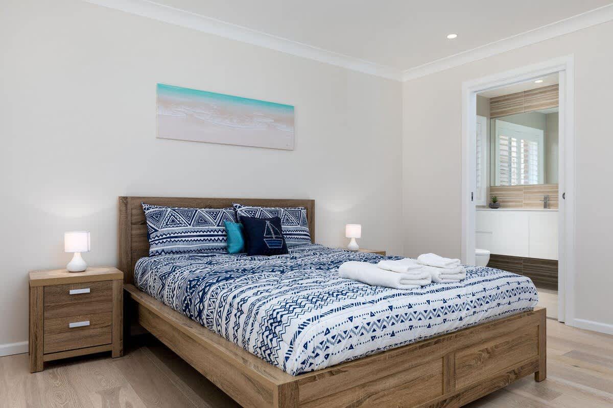 - Bedroom 1: Queen bed, Ensuite bathroom