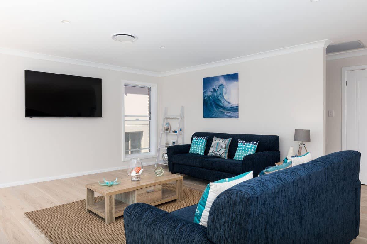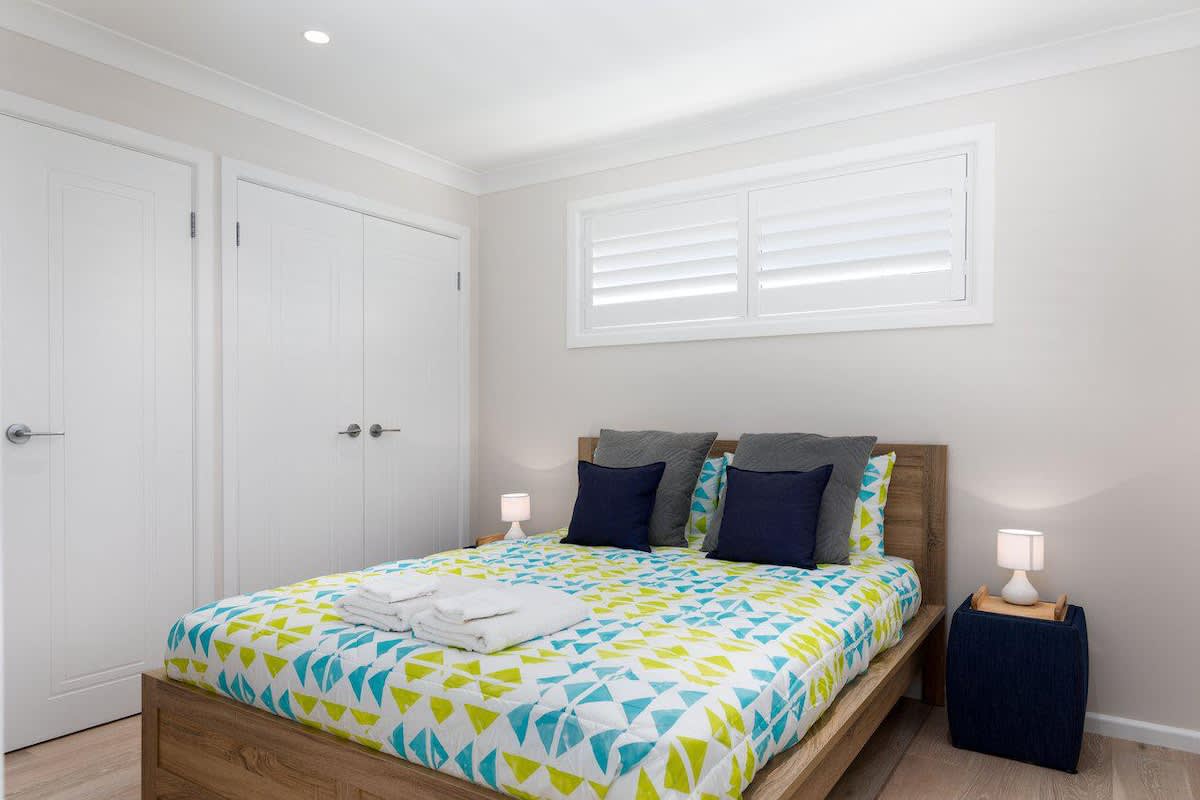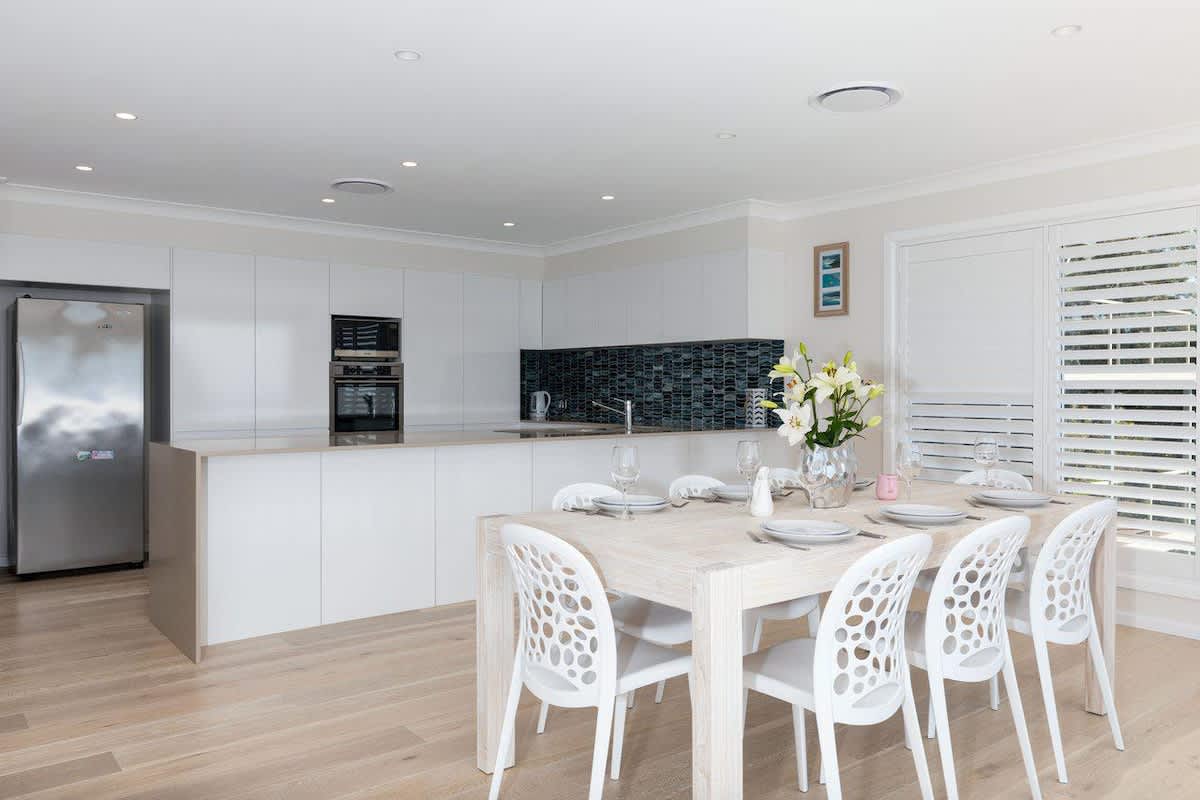 Enjoy commanding views of Jervis Bay through the ceiling to floor glass along the whole width of the house. You are a just short drive from the gorgeous beaches of the Bay - if you're feeling fit you can walk to the beach, however the walk back up the hill is quite steep.