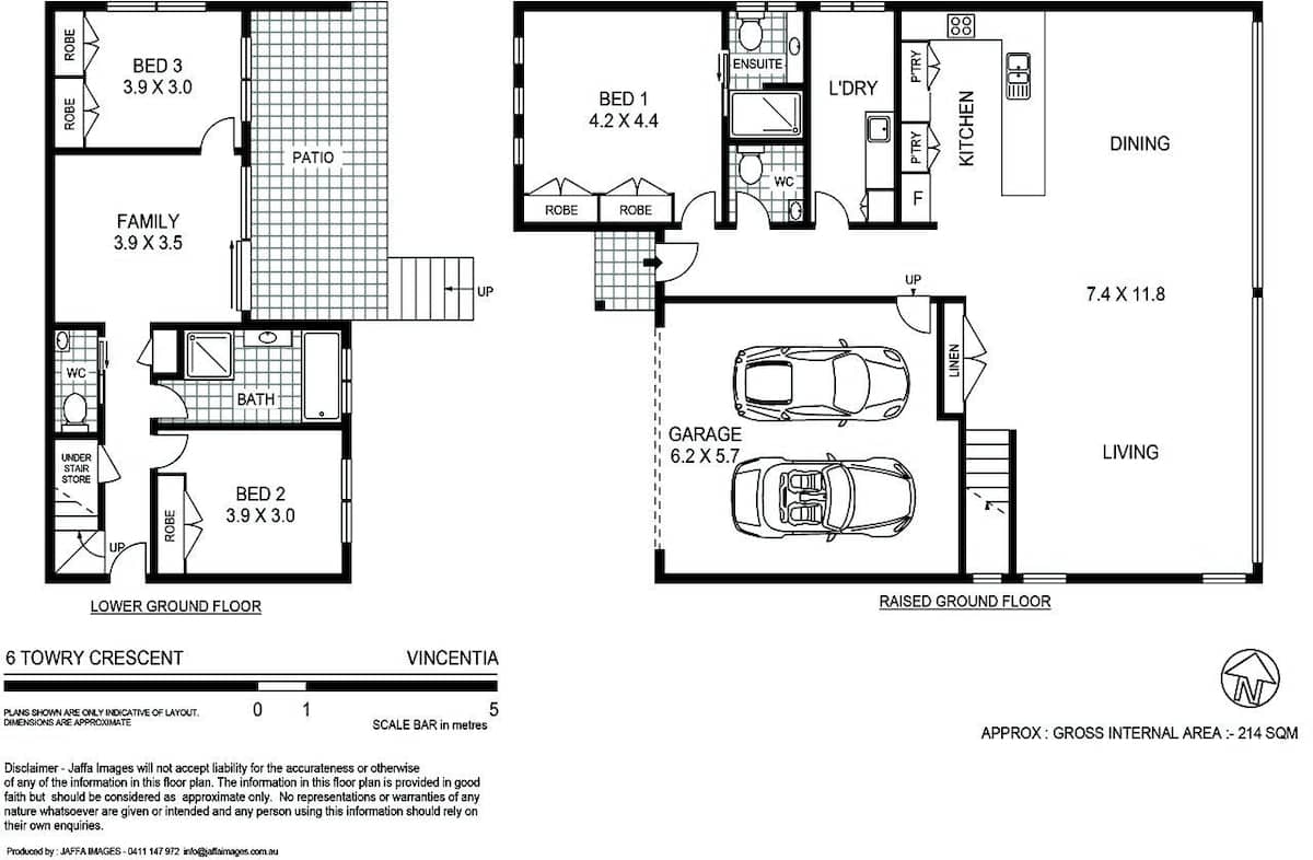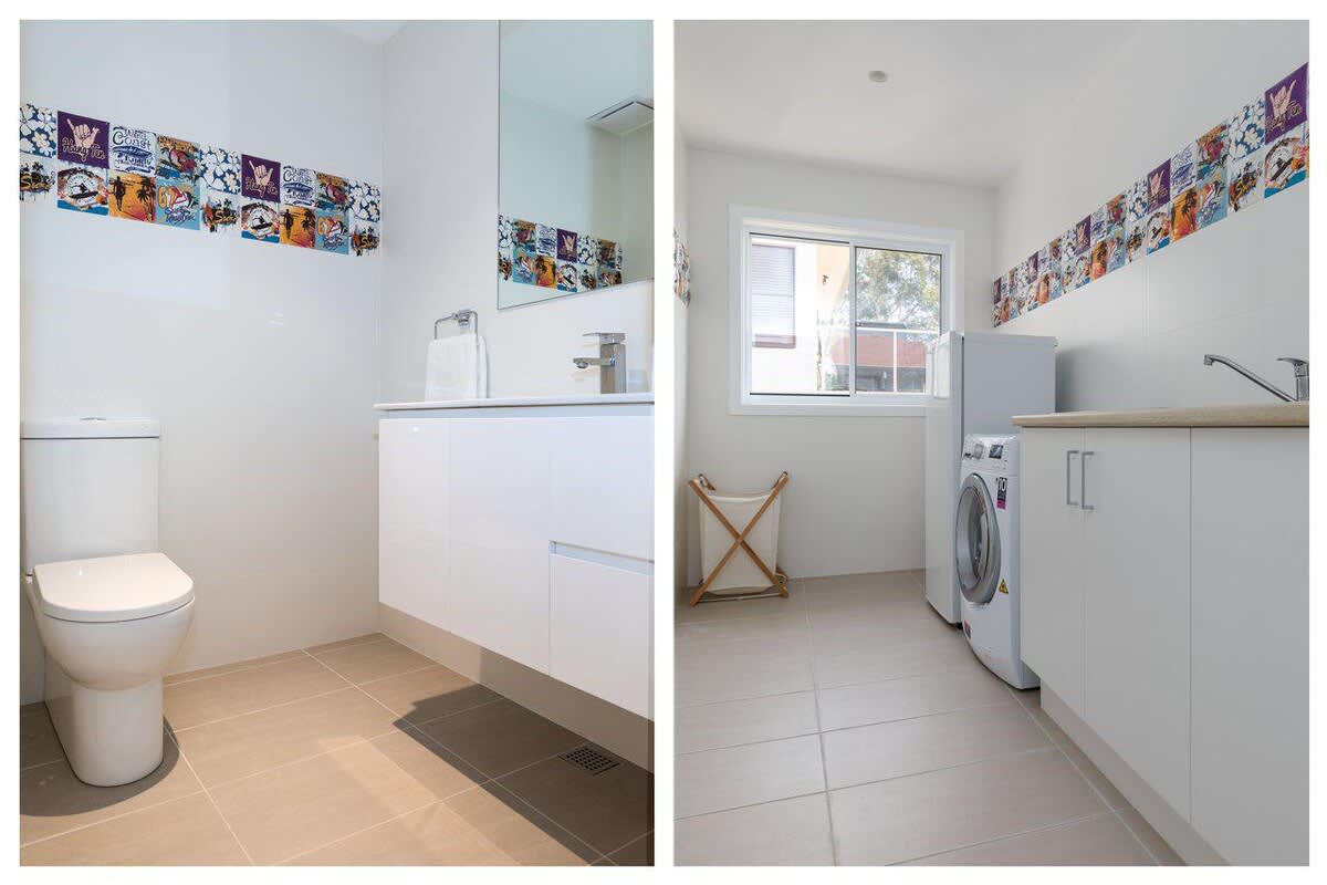- Layout: Two storey house; Open plan living/dining/kitchen upstairs as well as master bedroom with ensuite and laundry upstairs; Two bedrooms, main bathroom and second living area downstairs
