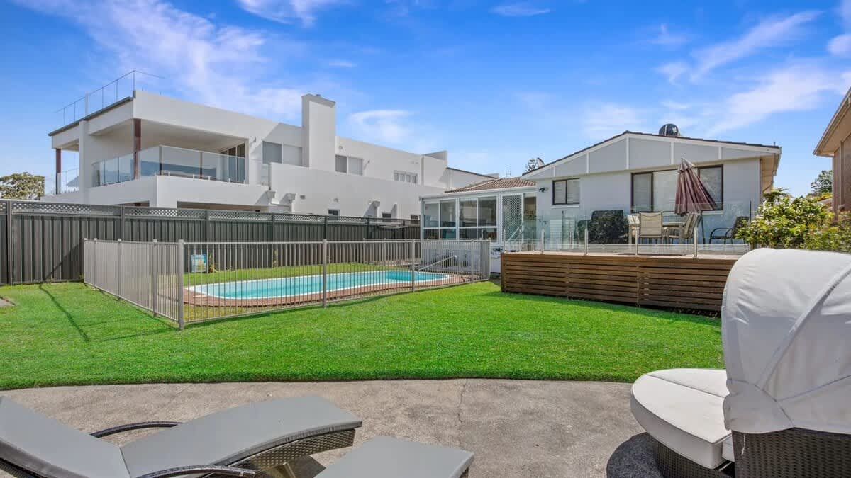 Wake up to the soothing sound of waves lapping and enjoy direct beach access to Jervis Bay, in this comfortably equipped 3 bedroom house. If the beach isn't calling, then perhaps take a dip in the salt water pool or watch the kids play in the spacious backyard while lounging on the day bed. This is one of Vincentia’s rare gems, offering both beachfront access and a swimming pool for the perfect getaway
