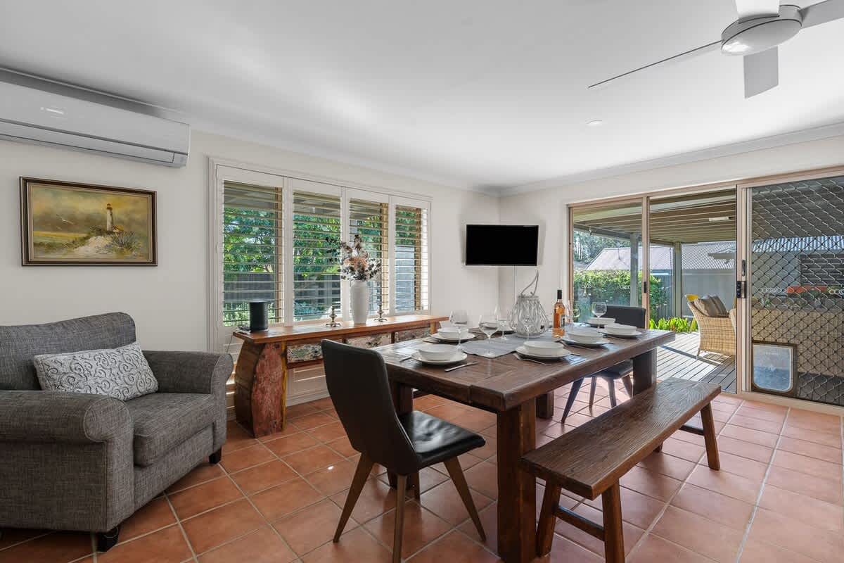 Just a 5 minute walk to Collingwood beach, and similarly close to Vincentia's cafes, shops, takeaways, bottle shop, and Coles, Bliss at Jervis Bay offers both convenience and seclusion. Perfect for family getaways, Bliss at Jervis Bay is nestled in one of the South Coast's most sought-after locations, offering a tranquil retreat where comfort meets coastal charm. This family-friendly and pet-welcome holiday home is set in a peaceful street, ensuring a serene "home away from home" atmosphere.