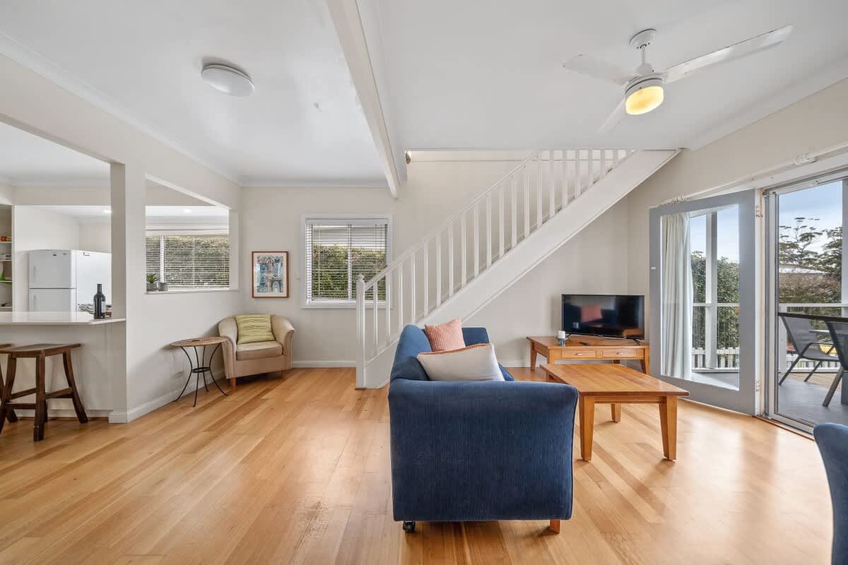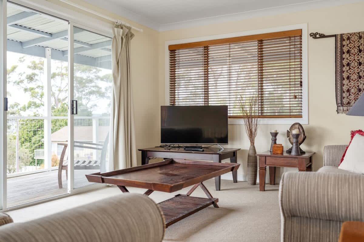 Located down the road from the white sands and crystal blue waters of Hyams beach, this 4 bedroom beachside home is the perfect getaway for families.
