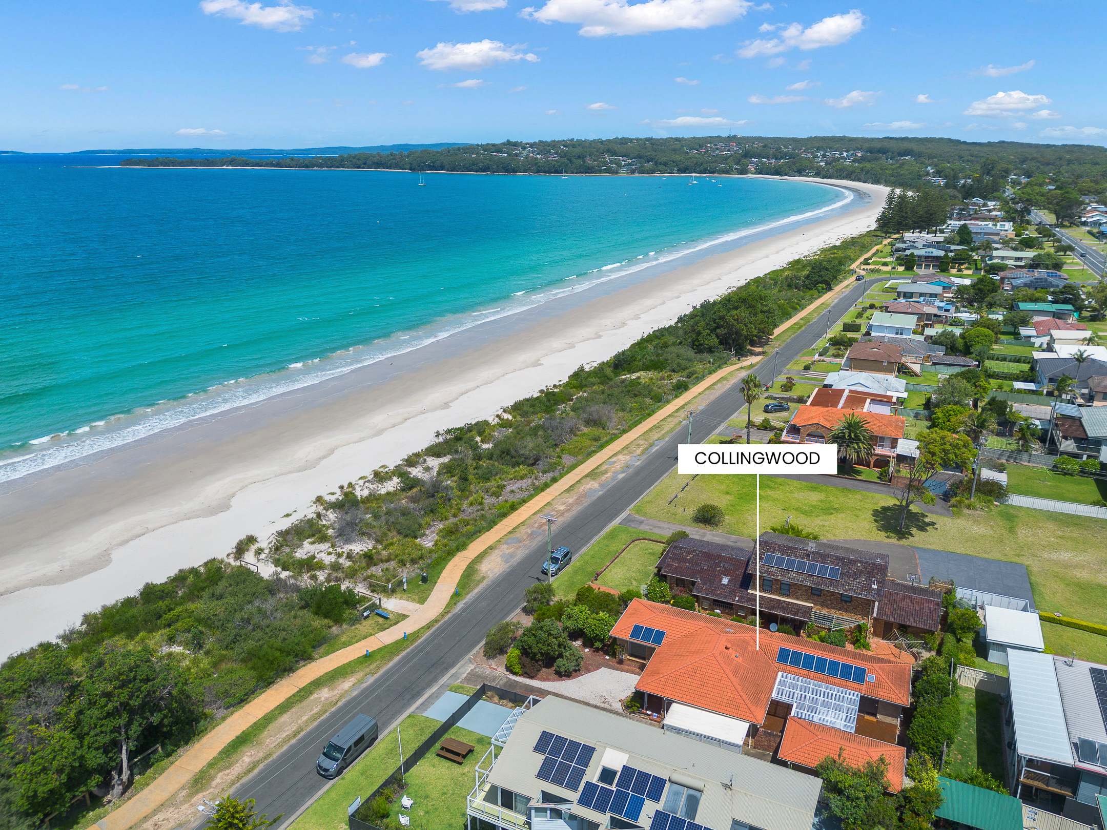 Discover the perfect coastal retreat at Collingwood Beach directly opposite the property, offering clear and calm waters ideal for swimming and relaxing. Huskisson A charming coastal town located approximately 2.0 kilometers away (a 4-minute drive). It offers various attractions such as cafes, restaurants, shops, and access to whale-watching tours and cruises. Vincentia Shopping Village Situated around 2.8 kilometers away (a 5-minute drive), it provides convenience with grocery stores, eateries, and other retail outlets. Home Co Vincentia A shopping complex located about 5 kilometers away (an 8-minute drive), offering additional retail options and amenities. Hyams Beach Famous for its stunning white sand beaches, it is approximately 8.6 kilometers away (an 11-minute drive). Visitors can enjoy swimming, snorkeling, and picnicking at this picturesque spot.