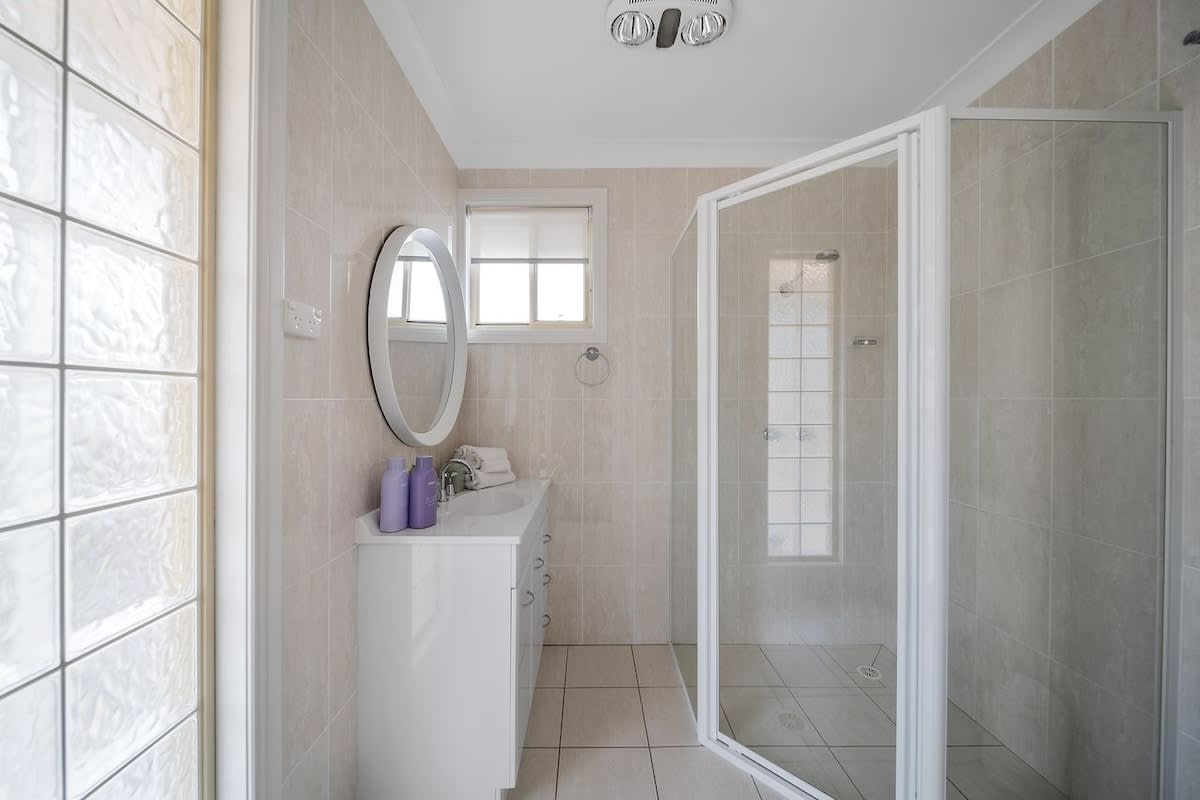 Bedroom 1: Queen bed, ceiling fan, walk-in robe and an ensuite with a shower, Plus a lounge room
