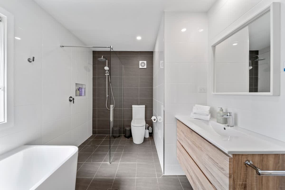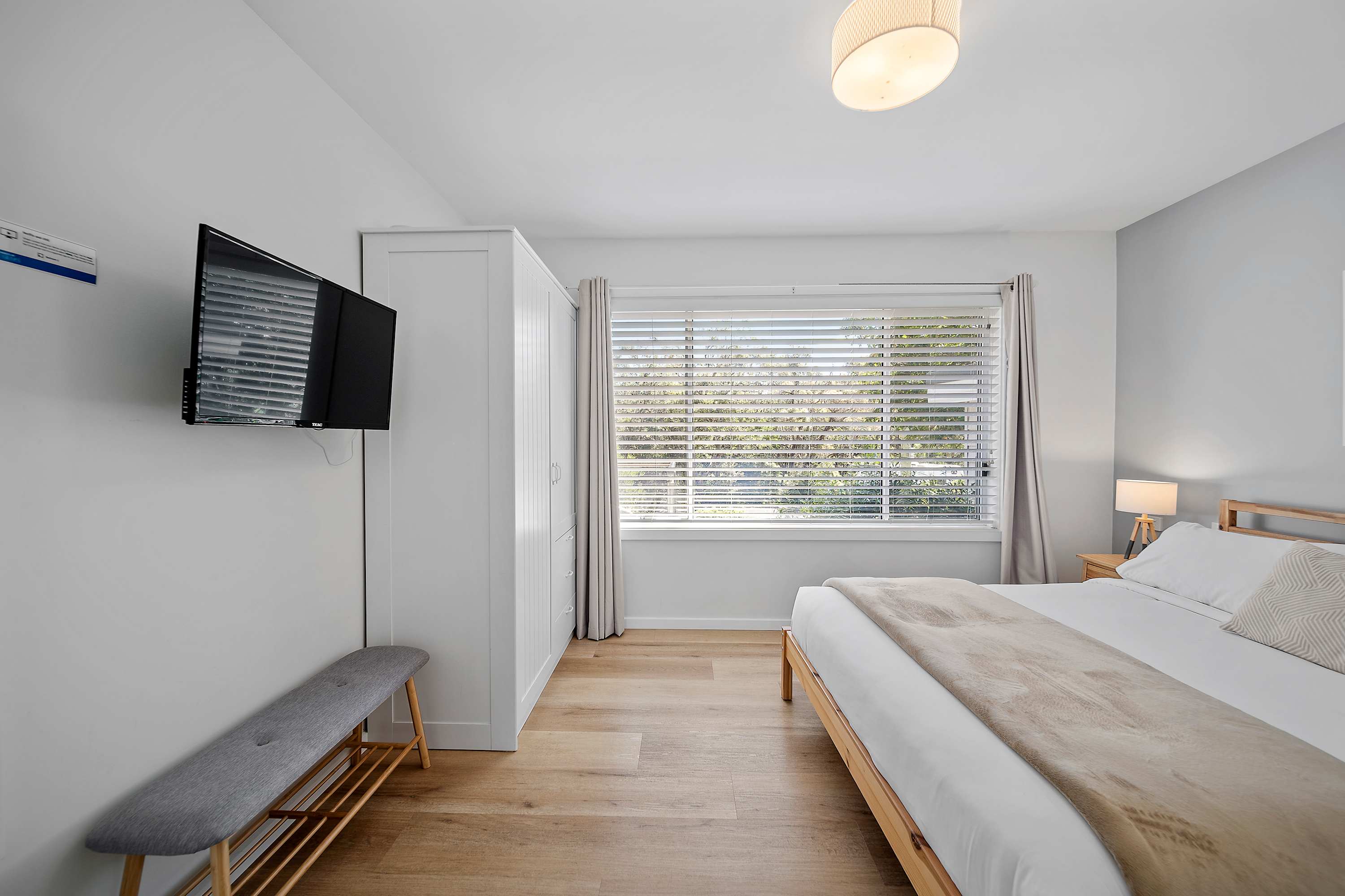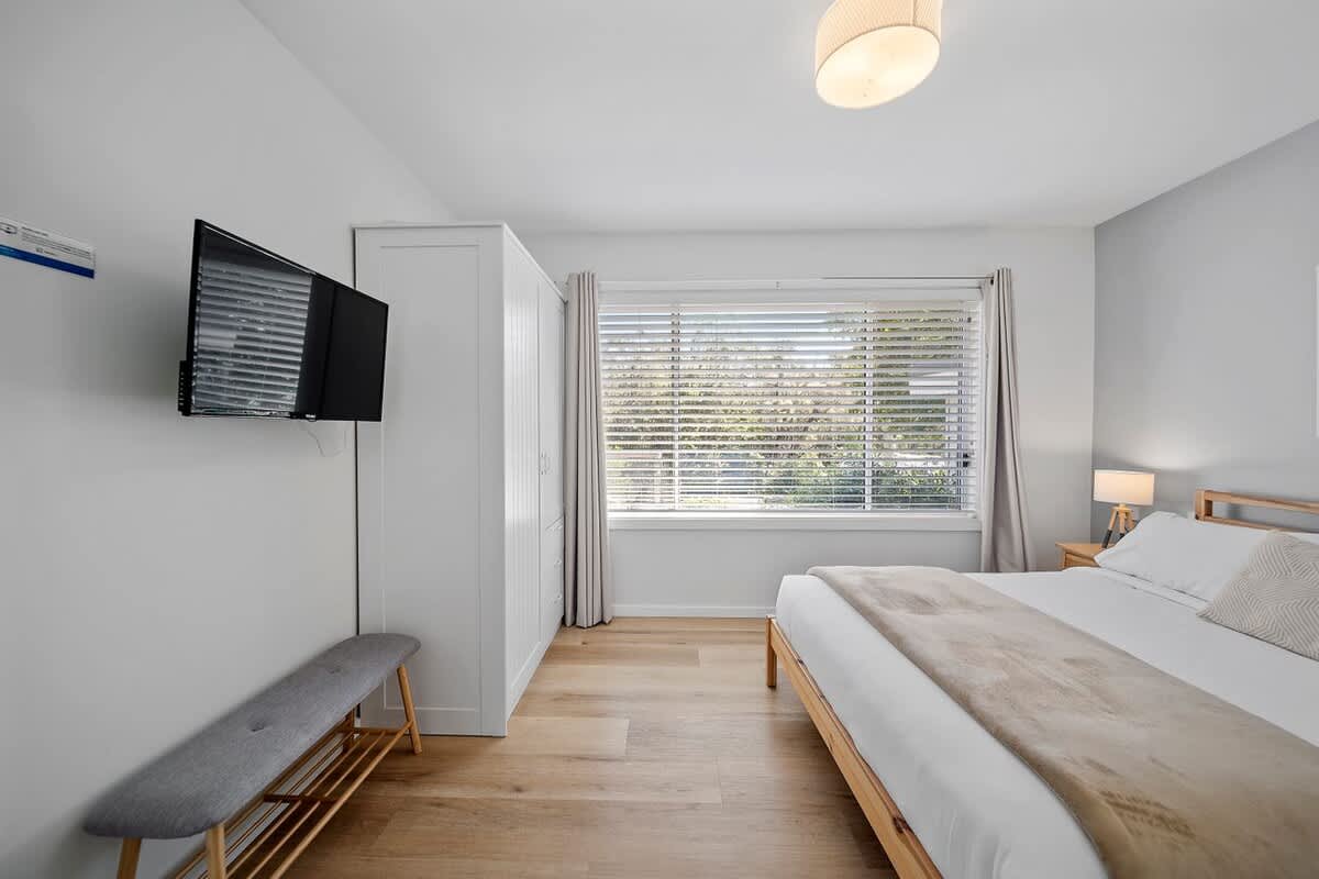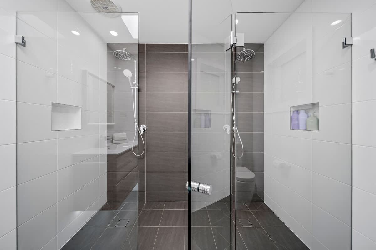 Bedroom 1: Queen bed, ensuite with his/her shower, access to rear deck,