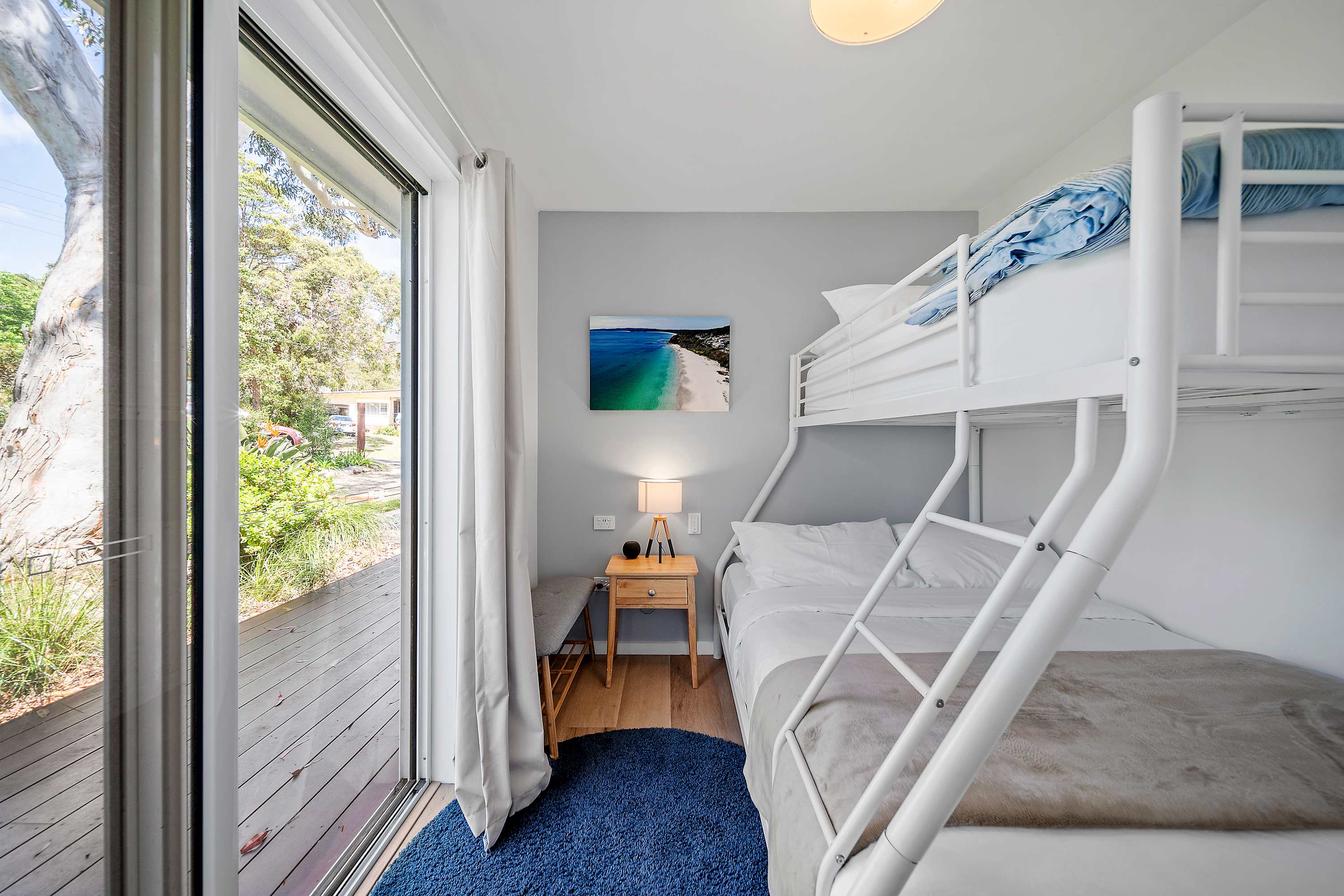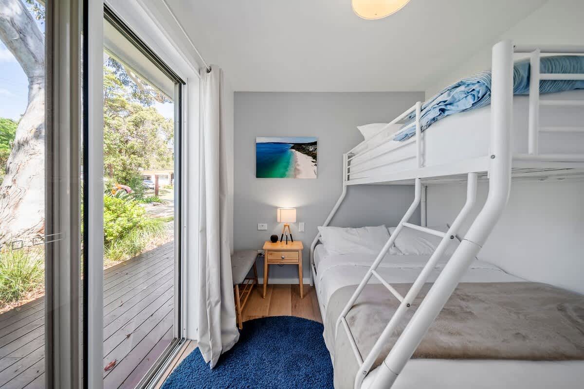 Bedroom 3: Bunk bed - a double bed below and a single bed on the top, access to the rear deck.
