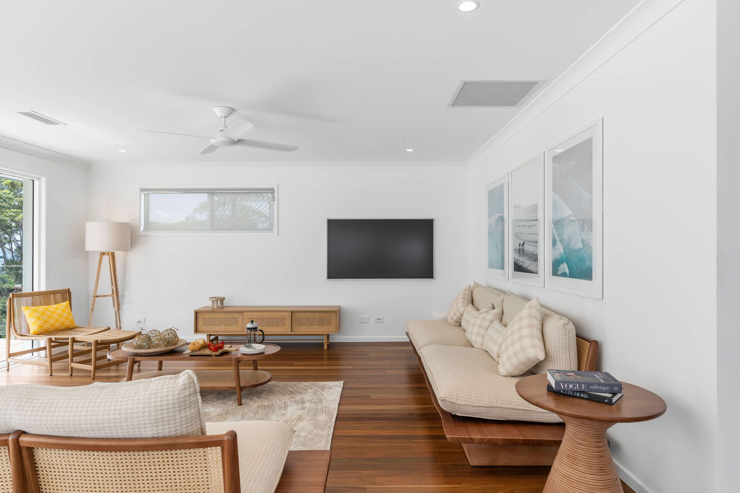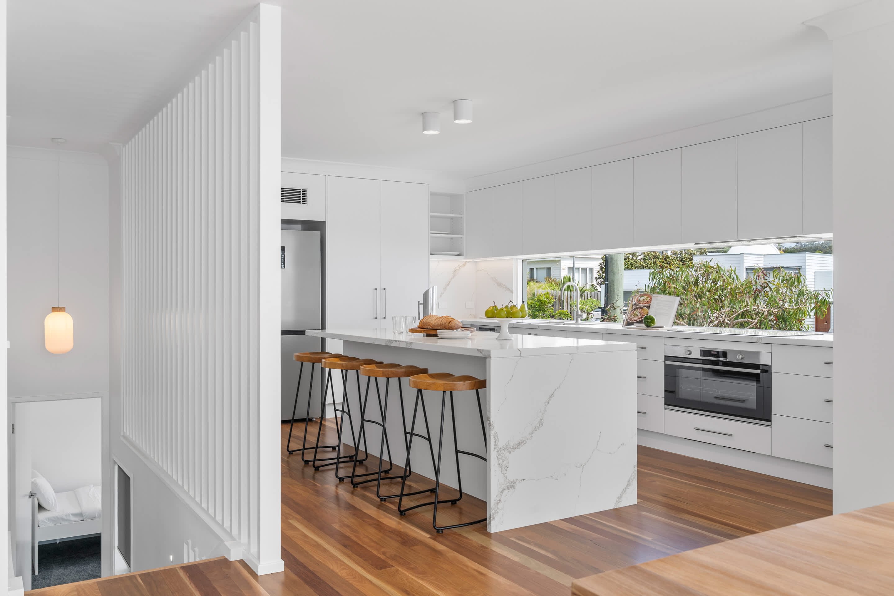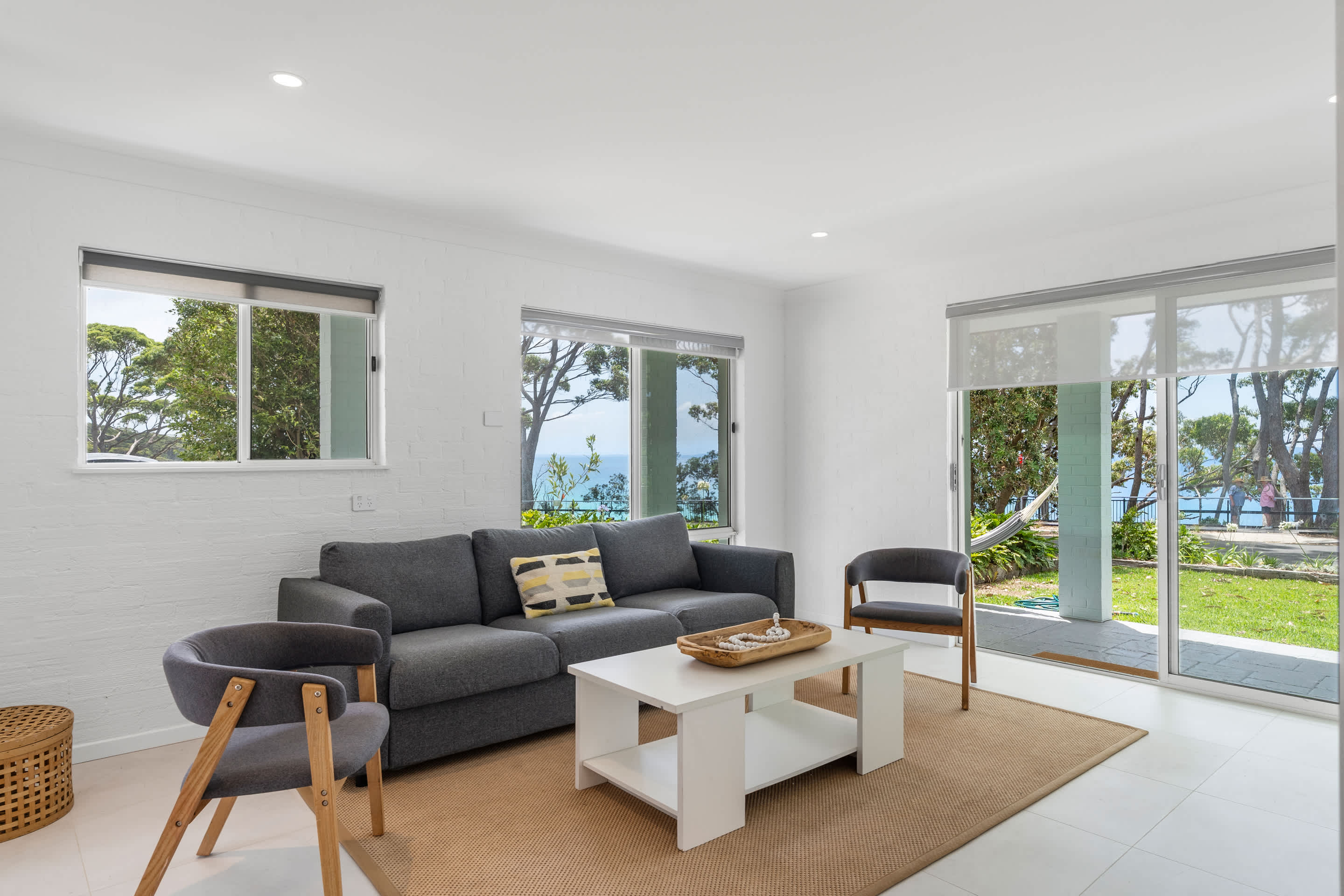 The upper level features open-plan living, dining, and a brand new kitchen with sweeping bay views and direct access to a large deck, perfect for alfresco meals, sunset drinks, and relaxing in the sea breeze. The kitchen is well equipped with a French-door fridge/freezer, induction cooktop, dishwasher, and quality appliances. A second living area on the ground floor provides additional space for kids to unwind or for quieter downtime