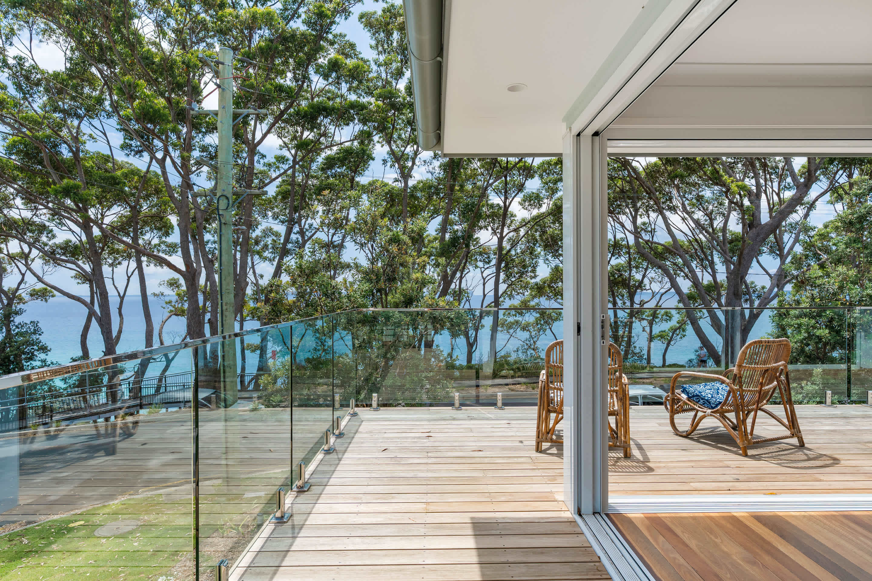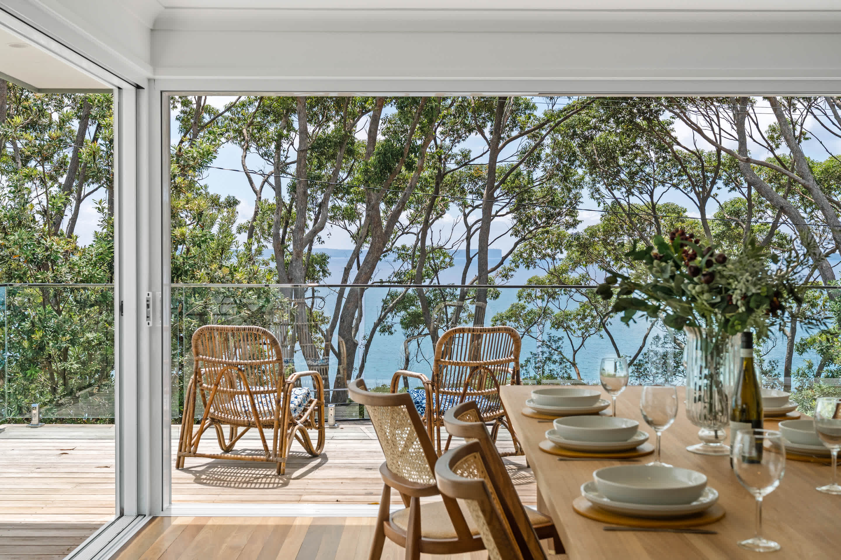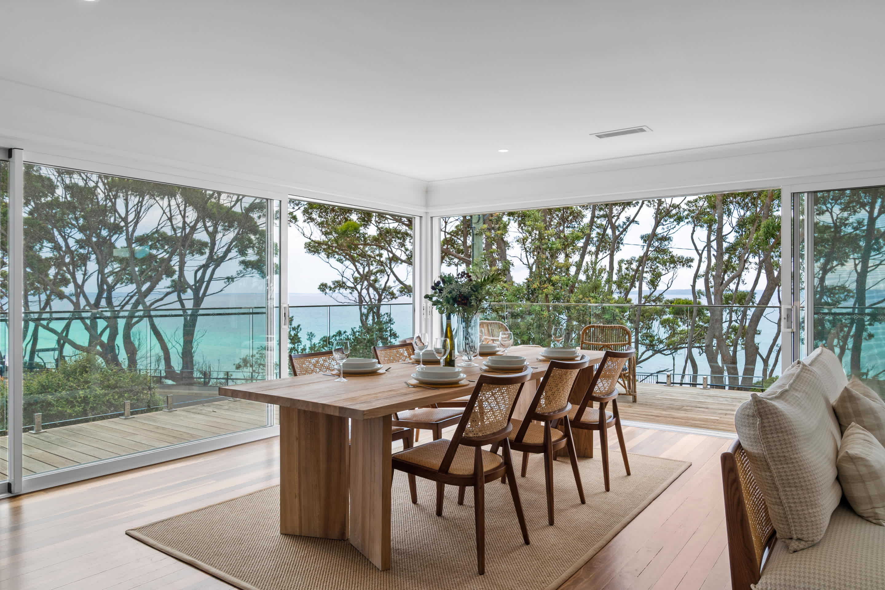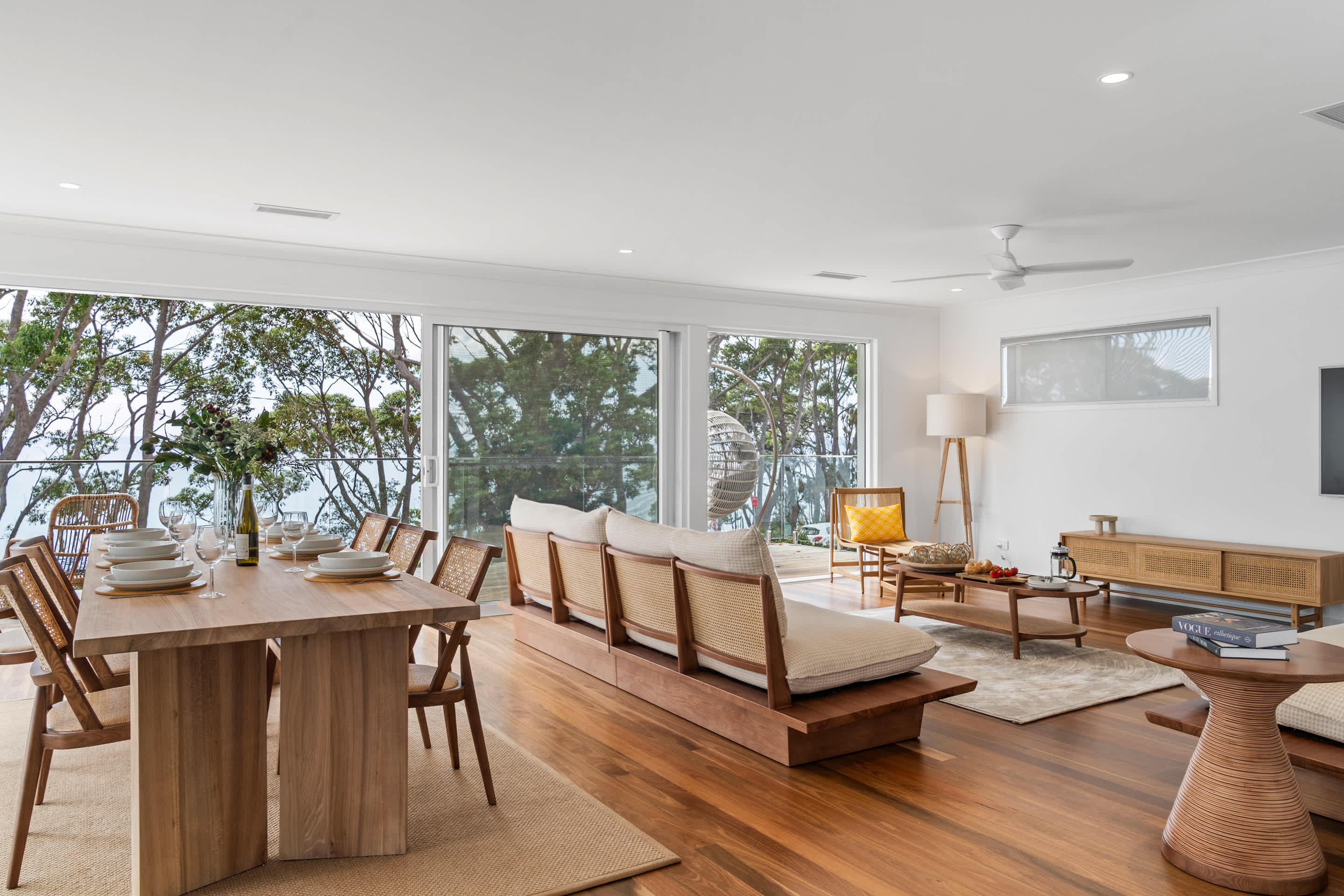 Welcome to Escape to Hyams Beach, a fully renovated five-bedroom coastal retreat set across three spacious levels with expansive views over Jervis Bay. Ideal for families and relaxed group stays, this light-filled home offers multiple living areas, ducted air conditioning, and beautiful indoor–outdoor flow, all just moments from the white sands of Hyams Beach.