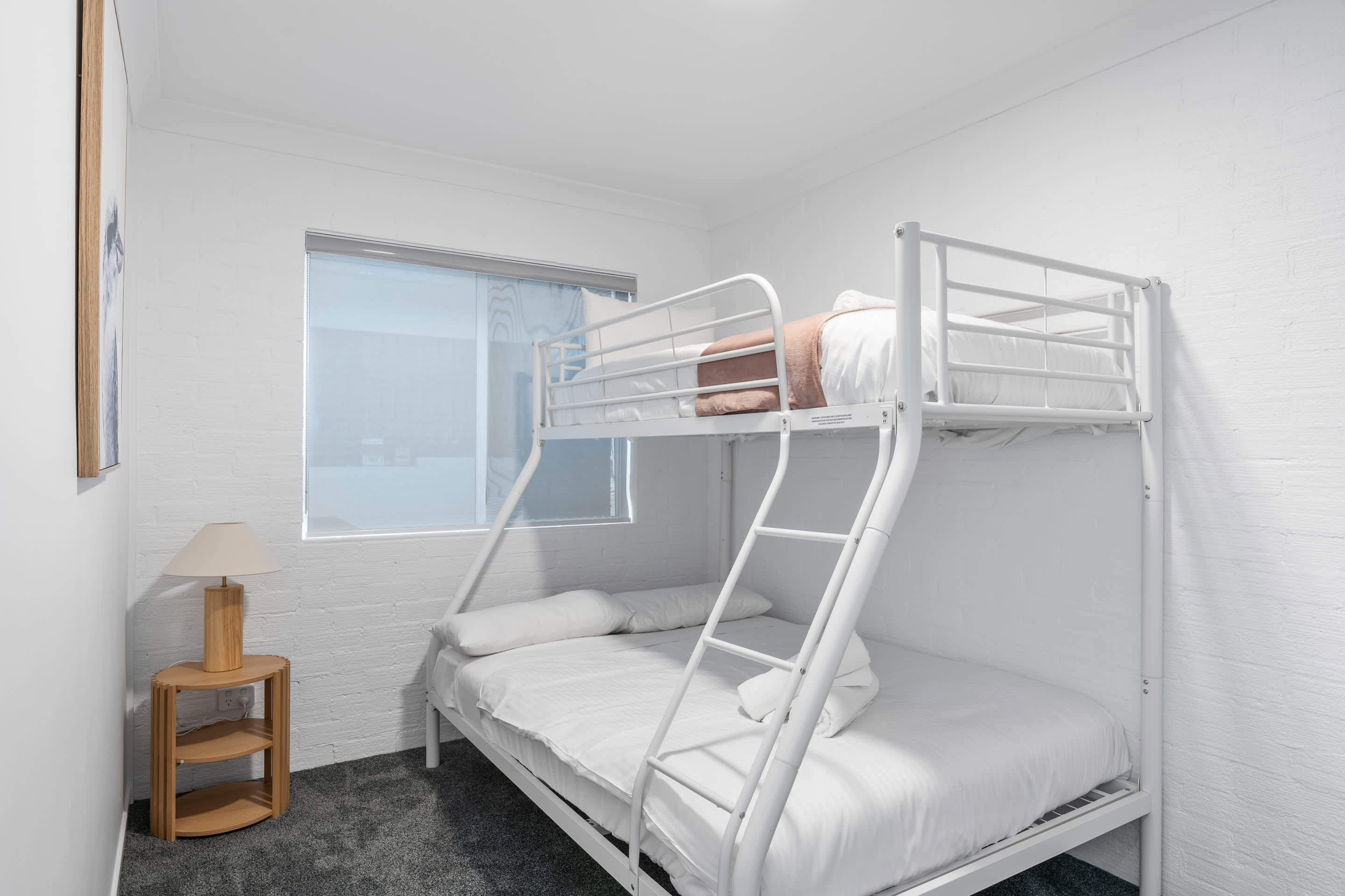 Bedroom 2: Tri-bunk (double with single above), built-in wardrobe