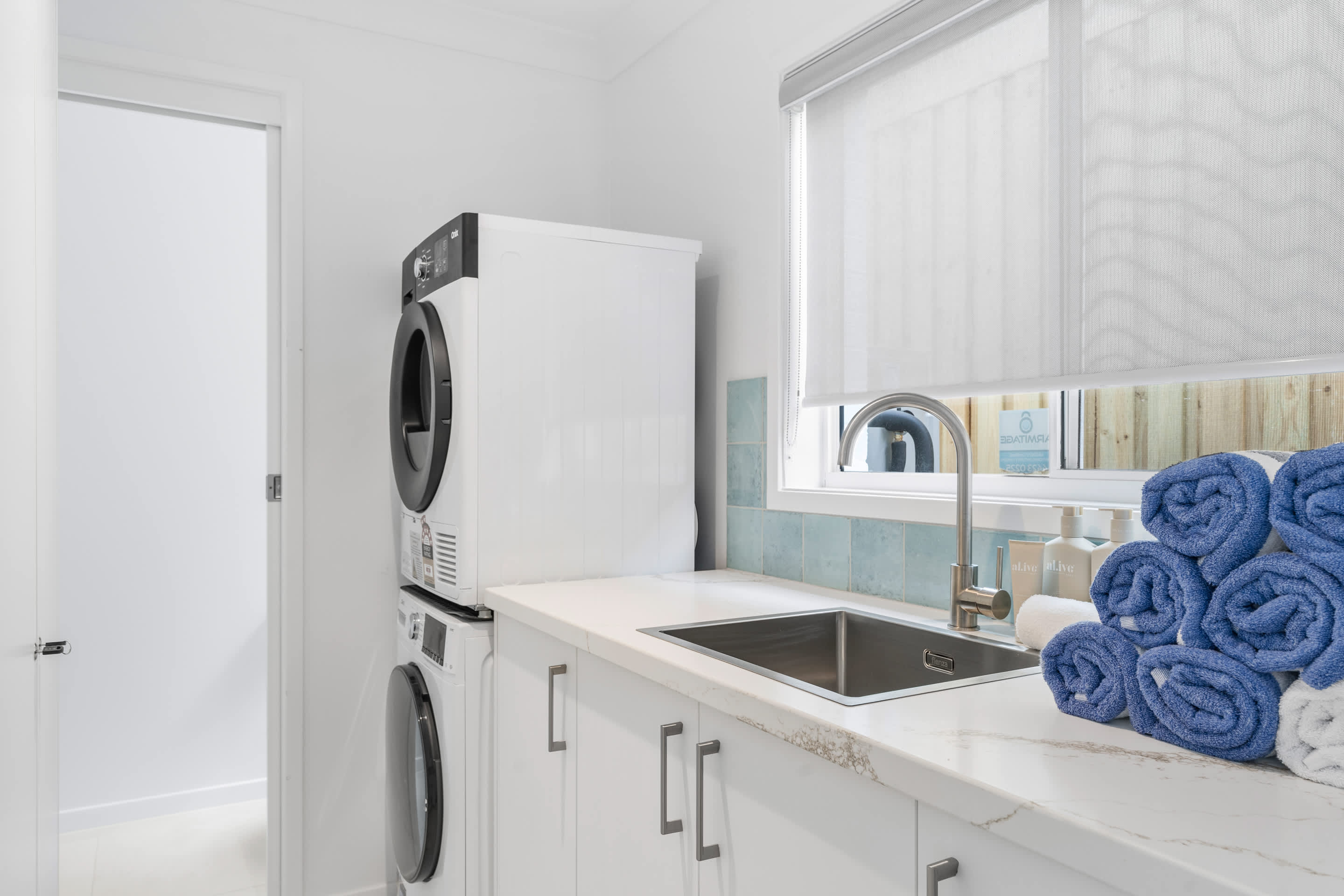 The laundry is fitted with both a washing machine and dryer for guest convenience. Outside, enjoy the spacious upper-level deck with water views, BBQ and outdoor dining area, as well as an outdoor shower after a day at the beach. Table tennis is available in the carport, providing fun for all ages.