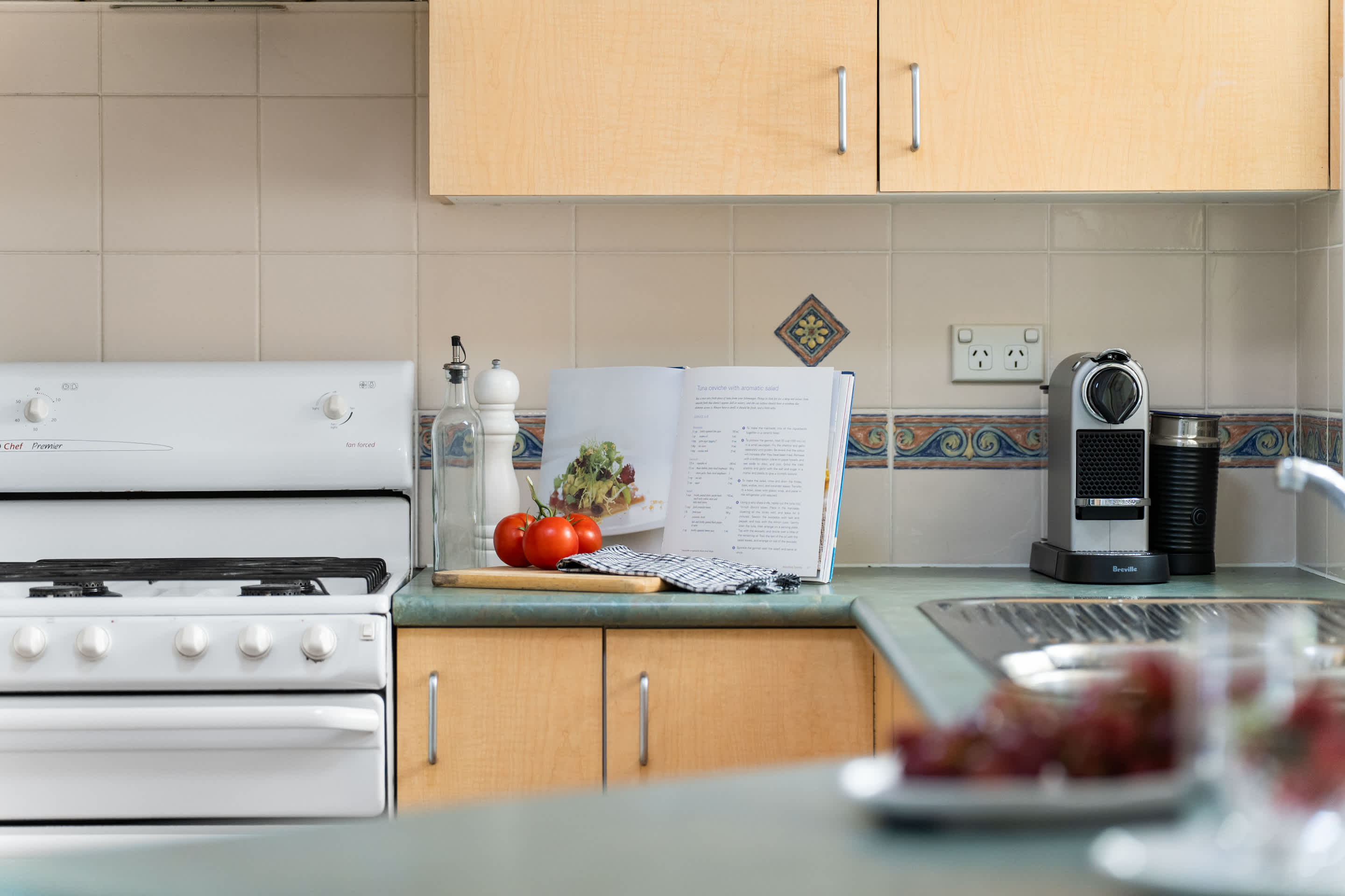 Set within a private, fenced yard with a relaxing patio area, this home offers a quiet escape with plenty of privacy. The kitchen comes fully stocked with modern appliances, including an electric oven, gas stove, fridge, and microwave, though there’s no dishwasher. The property is designed for those who value comfort and simplicity, ensuring a seamless and enjoyable stay.