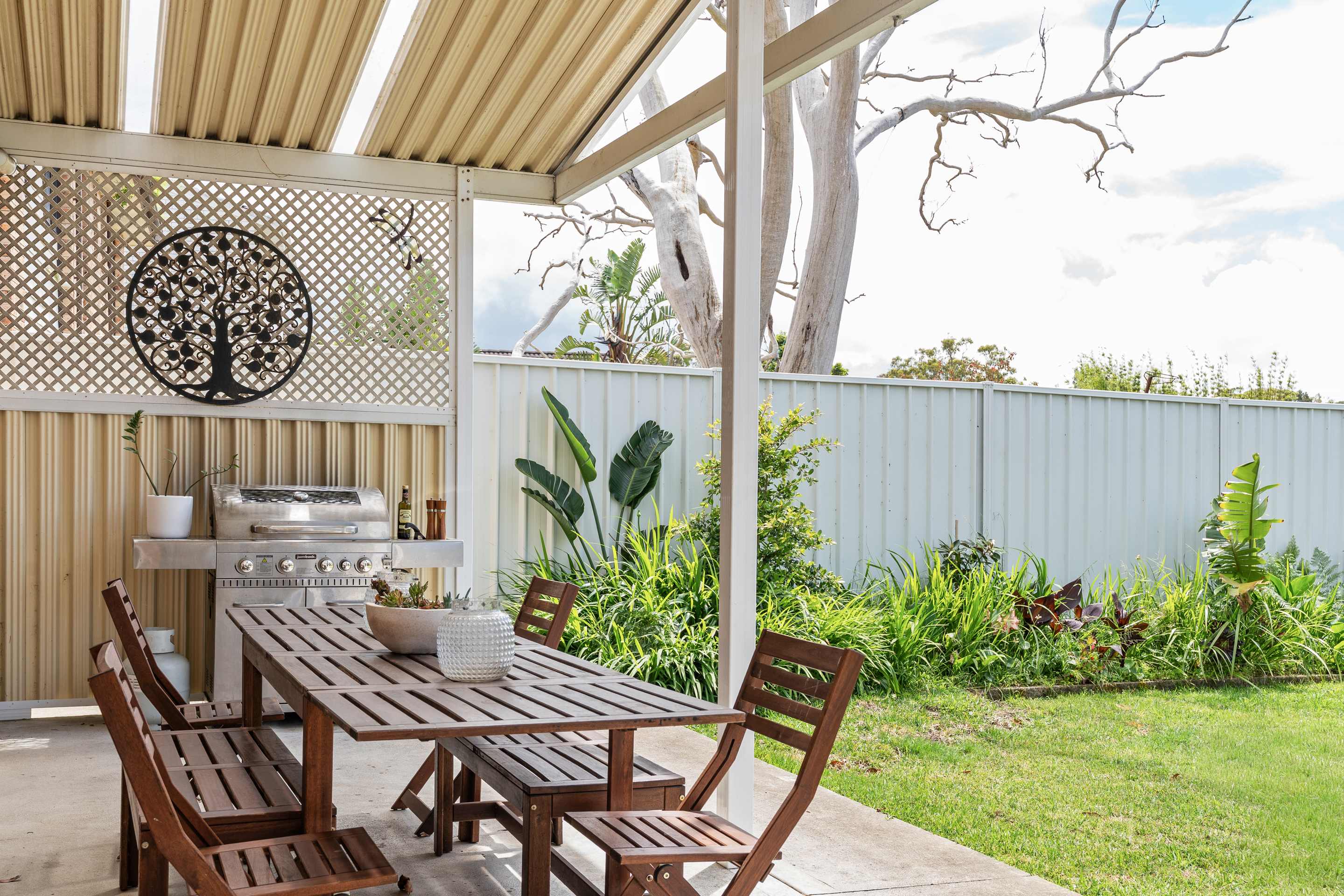 Outdoor BBQ area and fully fenced pet-friendly backyard