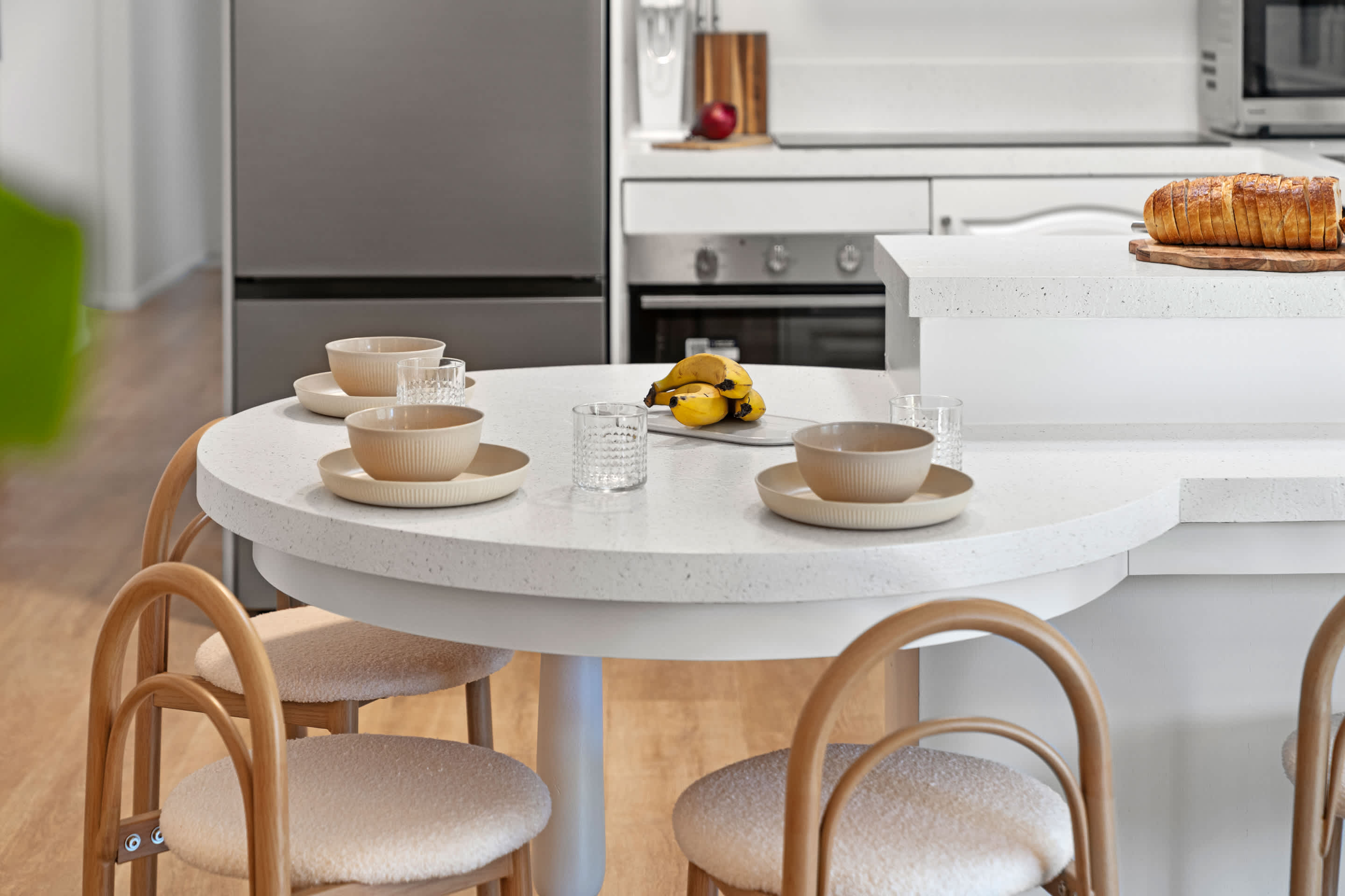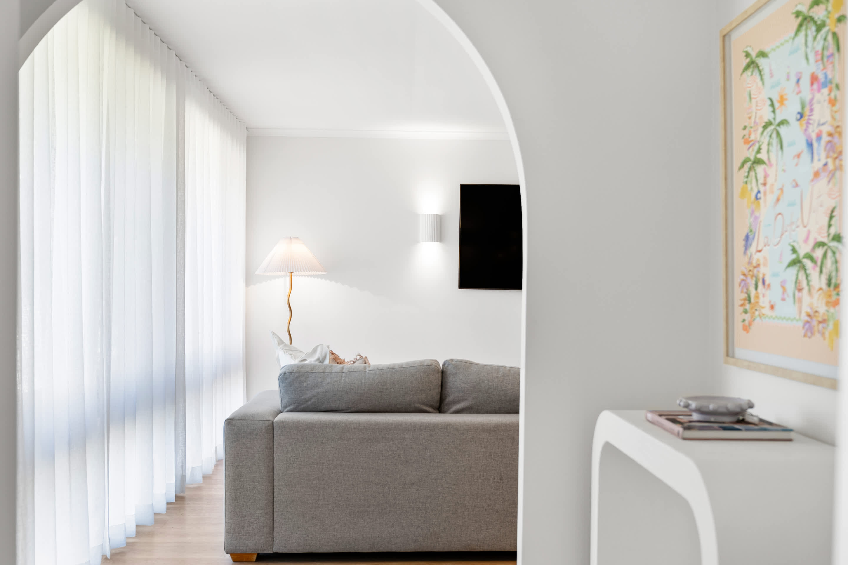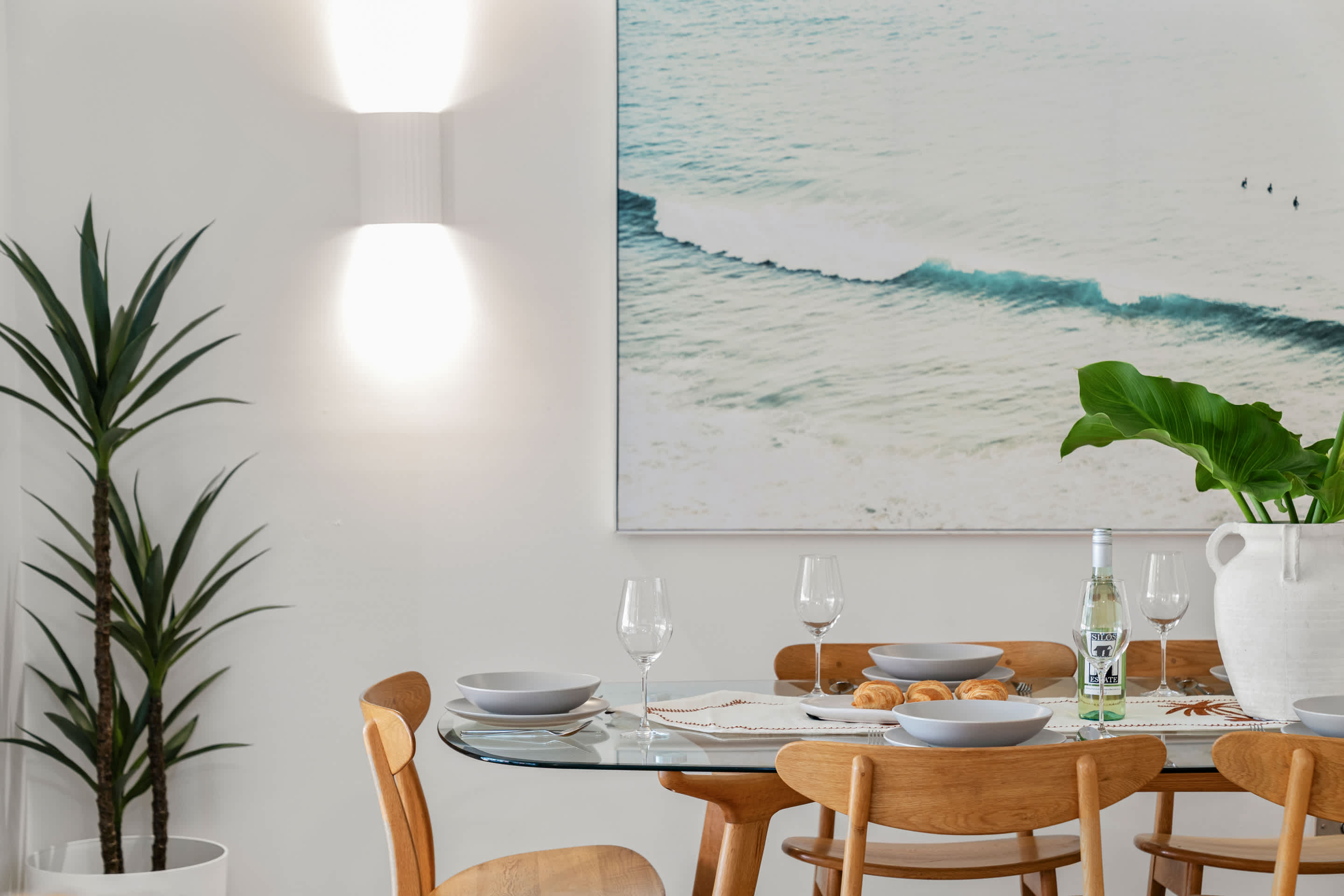 Inside, you’ll be greeted by a bright, open-plan living area where everyone can spread out. The home sleeps eight across three tranquil bedrooms. Each designed for a restful night after a day of seaside fun. A fully equipped kitchen and breakfast bar make meal prep effortless, while tasteful décor, abundant natural light and invite you to relax or reconnect at your leisure.