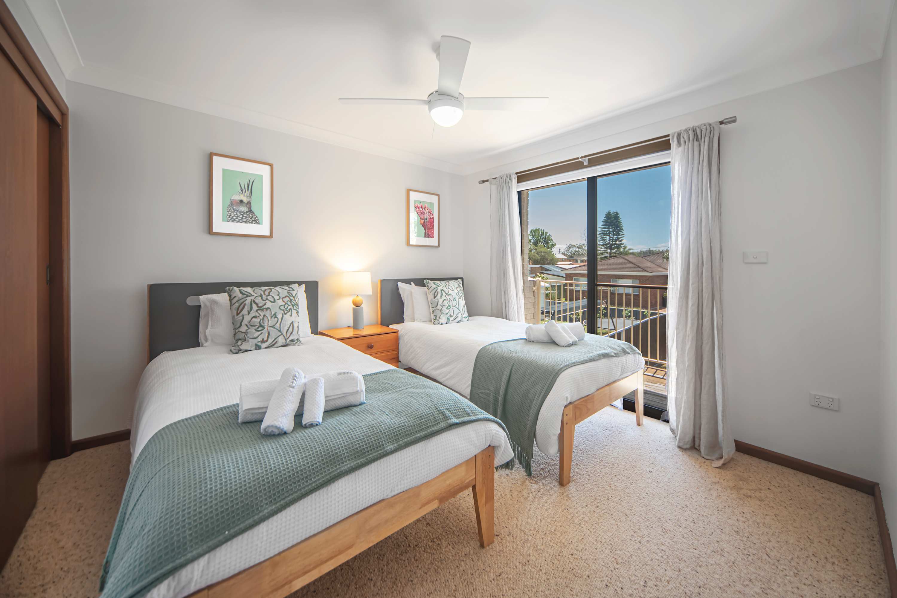 Bedroom 3: 2 x King Single Beds, Balcony Access, Built In Robe, Ceiling Fan