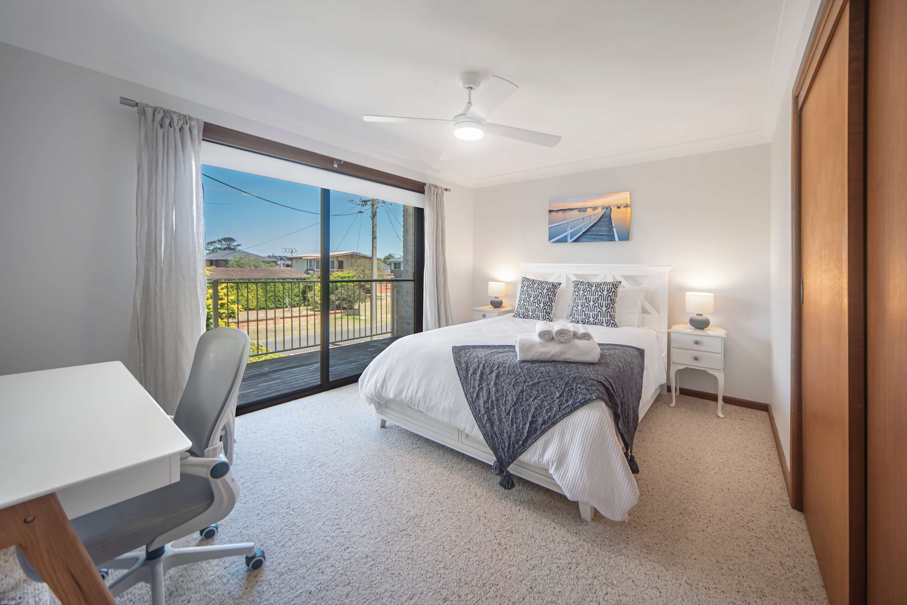 Bedroom 1: Queen Bed, Study Desk, Balcony Access, Built In Robe, Ceiling Fan