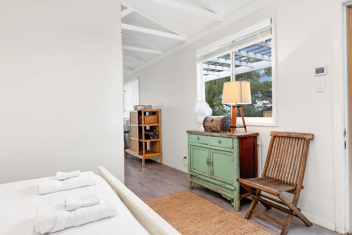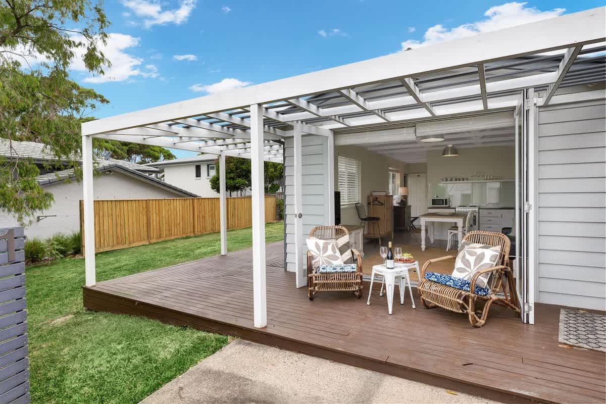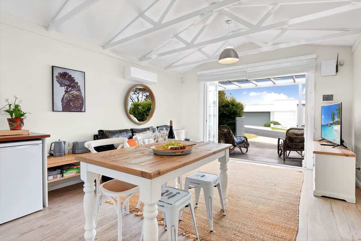 Seascape is a bright, self-contained studio across the road from the white sands of Hyams Beach. It is the perfect place to escape to for a romantic weekend away or longer holiday. Just a two minute walk to the beach.