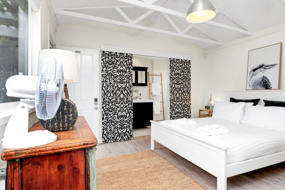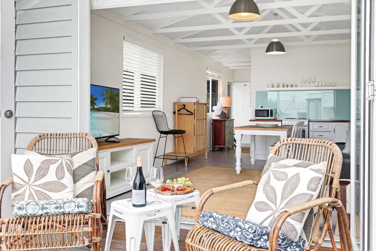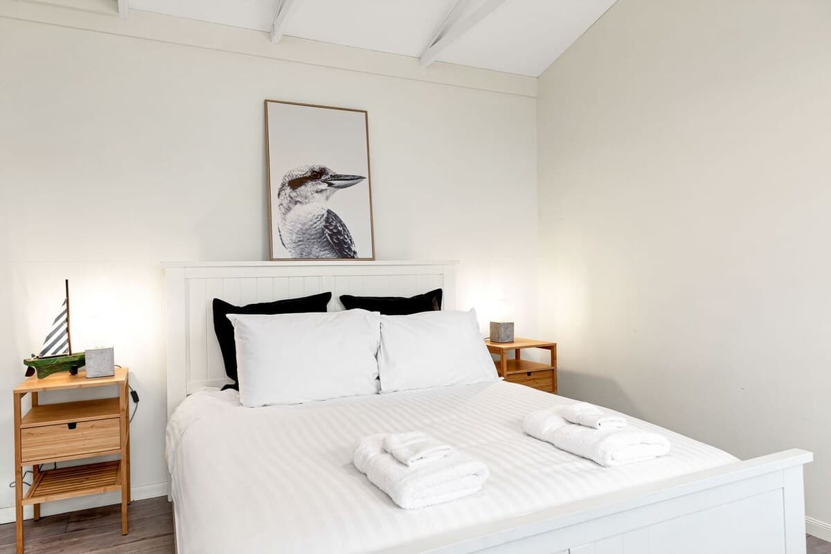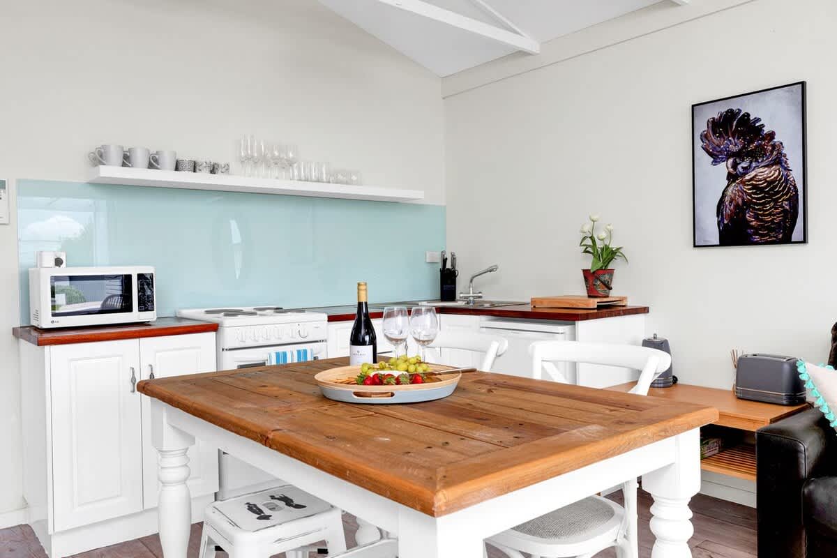 Seascape is a bright, self-contained studio across the road from the white sands of Hyams Beach. It is the perfect place to escape to for a romantic weekend away or longer holiday. Just a two minute walk to the beach.