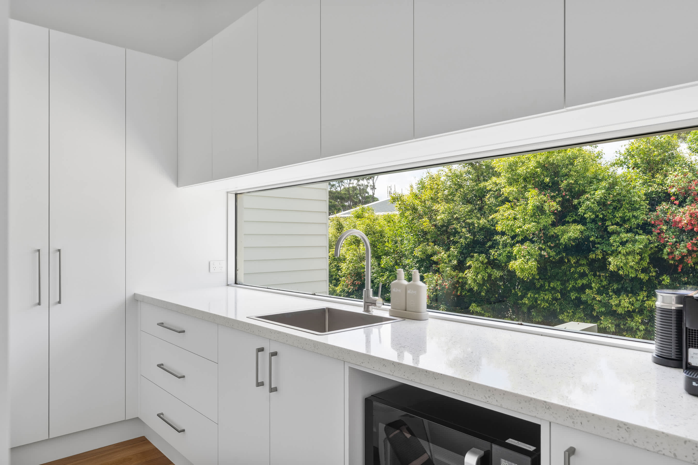 Fully equipped kitchen for meal preparation, including a coffee machine