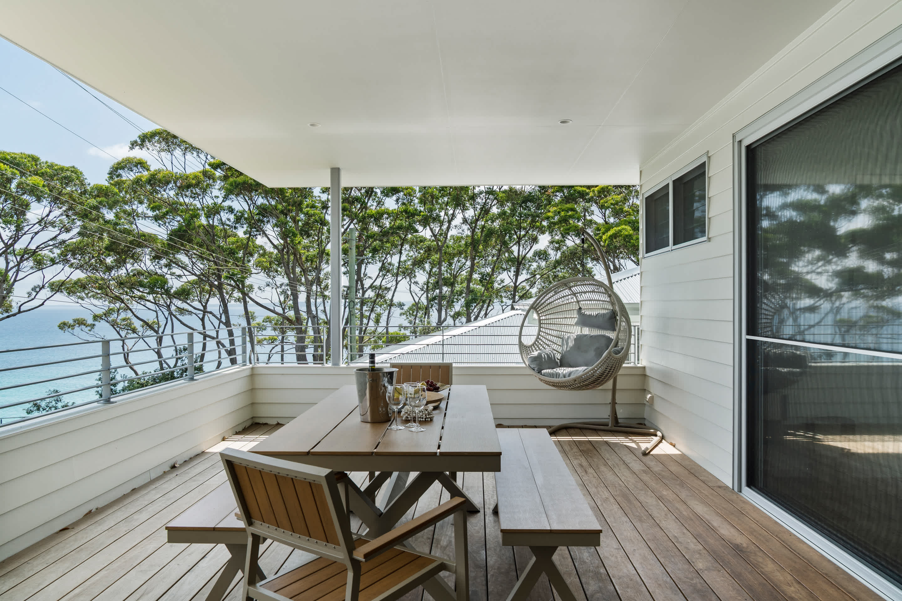 Wake up to uninterrupted views of the turquoise waters of Jervis Bay at this beautifully styled, brand-new coastal retreat. Perfectly positioned beachfront, the home offers a seamless blend of modern comfort and relaxed seaside living, making it an ideal escape for those seeking both tranquility and convenience. Whether you’re enjoying morning coffee with ocean views or unwinding after a day at the beach, every moment here feels effortlessly special.