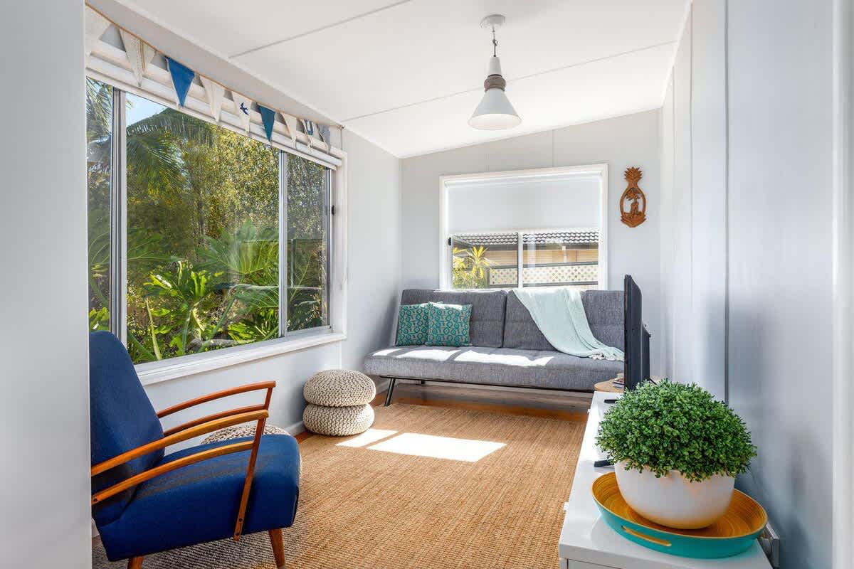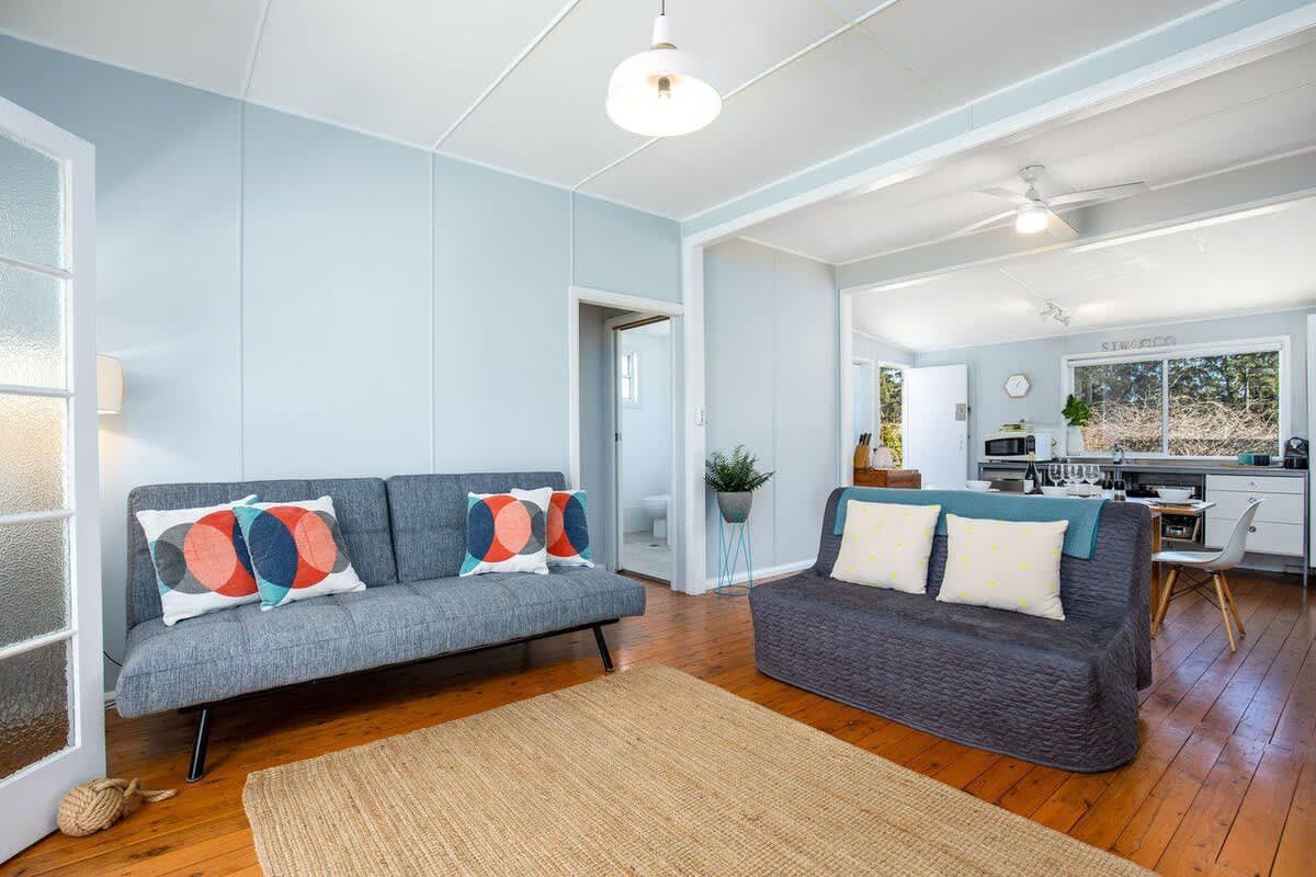 This original 70's inspired beach shack is the perfect retro holiday home. Tastefully furnished inside, and the bonus of a large sunny yard to play in outside, this is a place you will want to return to year after year. Located within easy walking distance of the beach, bike path, children's playgrounds and town centre, you will be able to leave the car in the driveway and enjoy a stress free holiday.