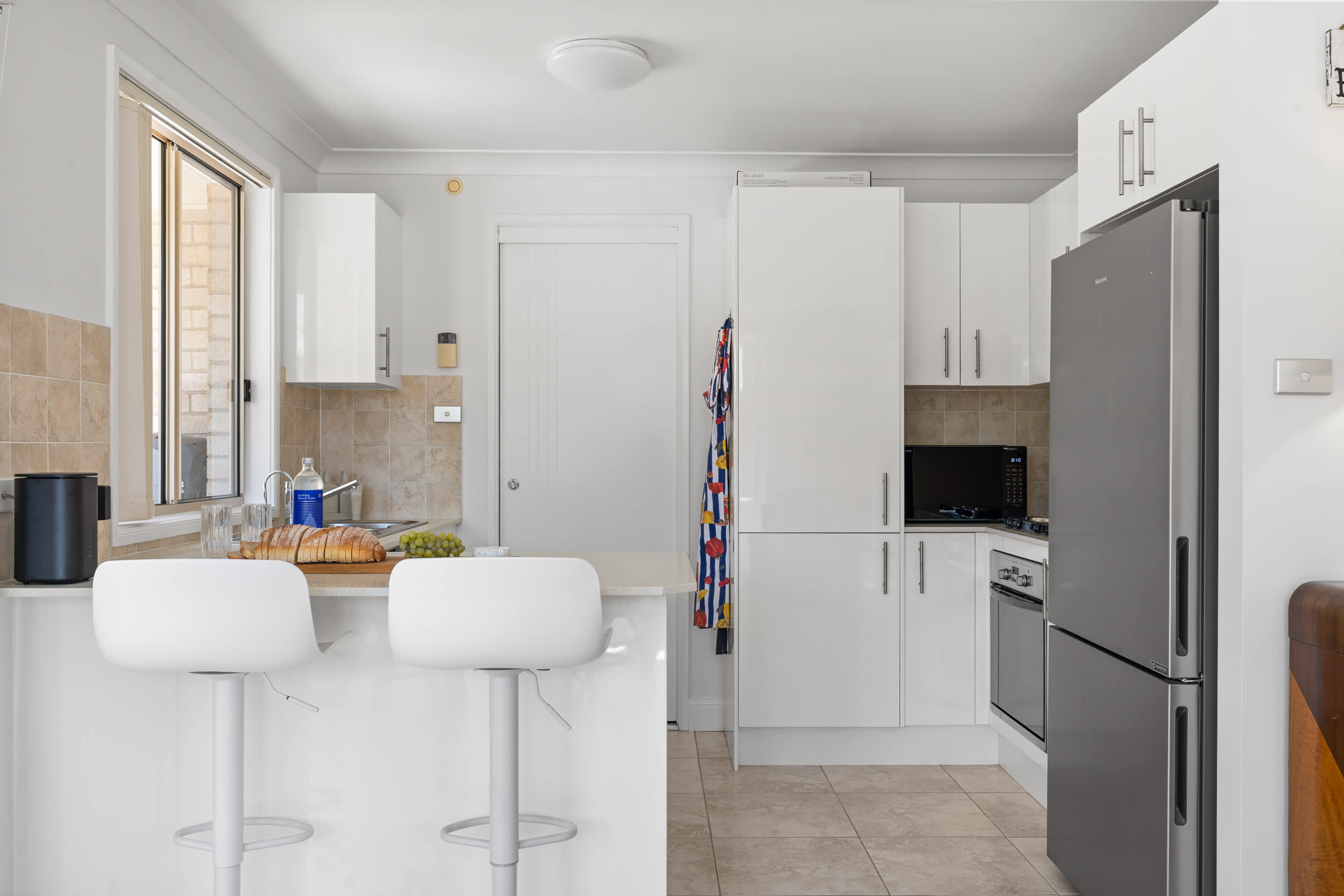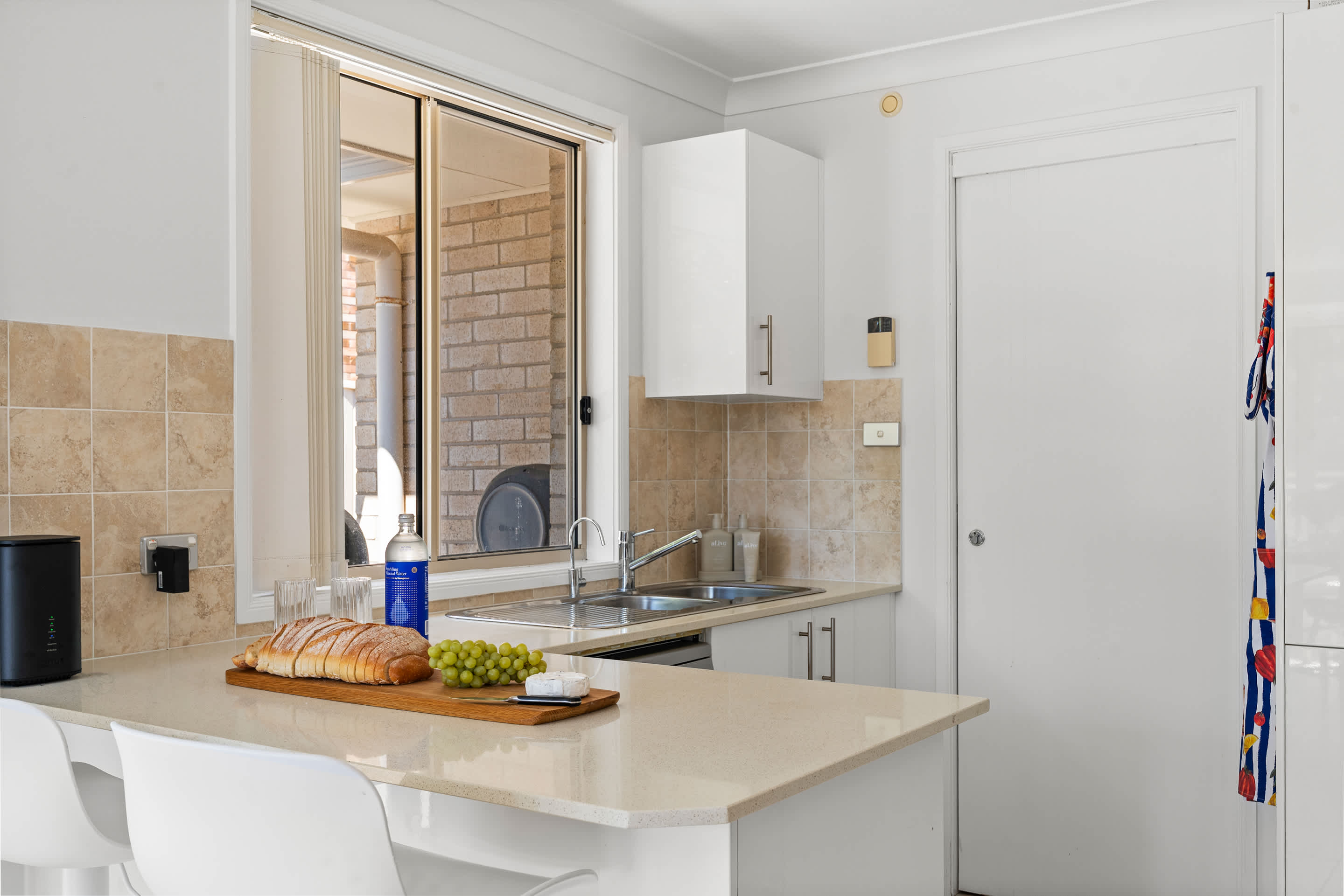 Step inside to an airy, light-filled interior where modern comfort meets an eclectic mix of coastal style and playful character. The home boasts an open-plan living area and features ample windows for natural light. Entertainment is covered with a main lounge room featuring a Smart TV, Sound Bar, and a PlayStation 5. The home offers three comfortable ground-floor bedrooms and one contemporary bathroom, ensuring easy access for up to five guests.
