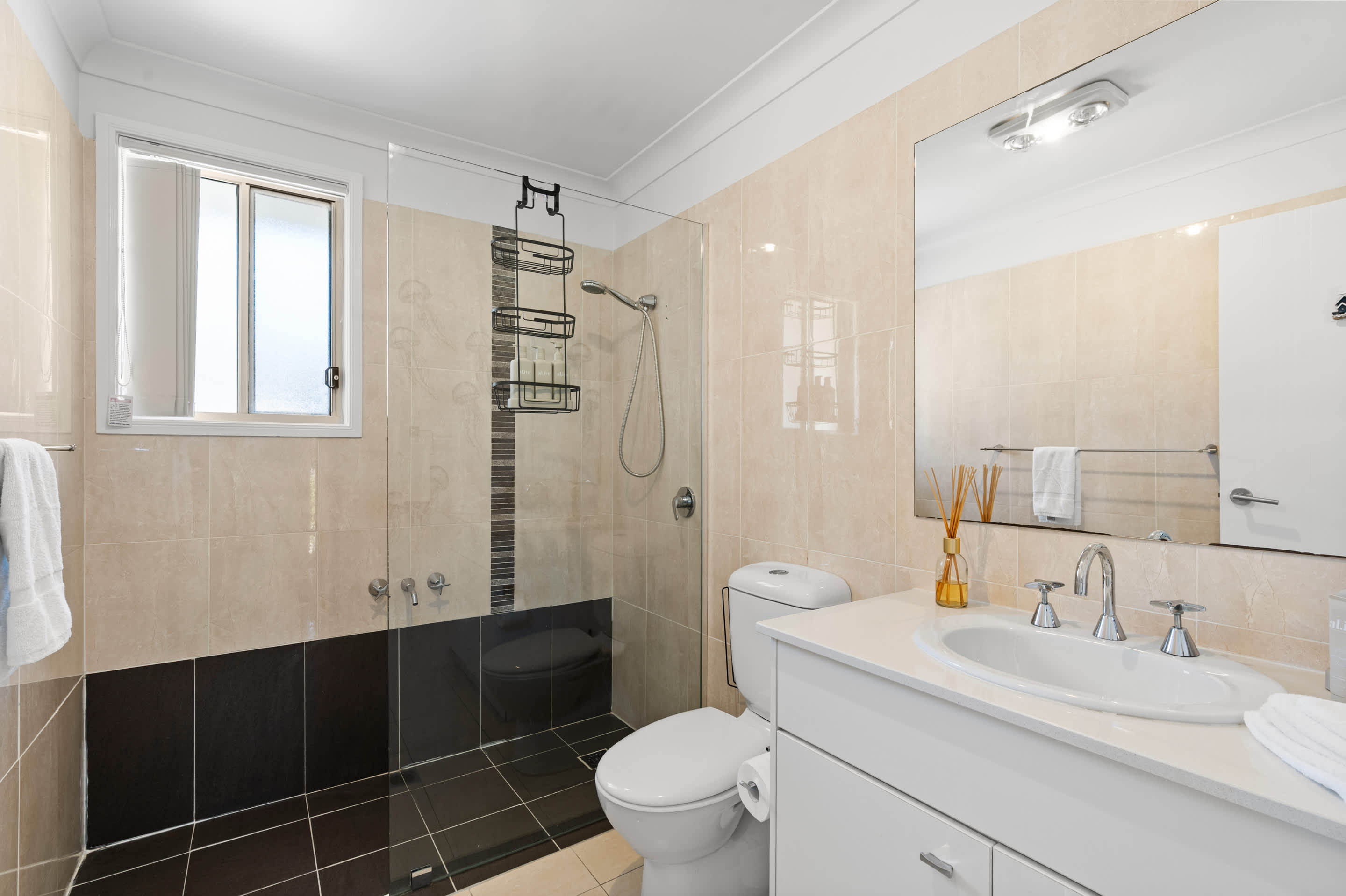 Bathroom 1: Shower, Toilet, Vanity